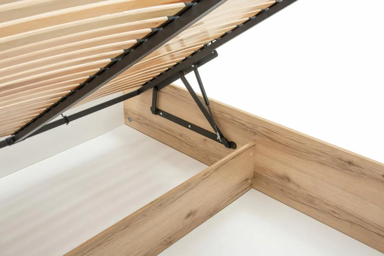 - Podnośniki po obu stronach łóżka ułatwiają podniesienie stelaża.
