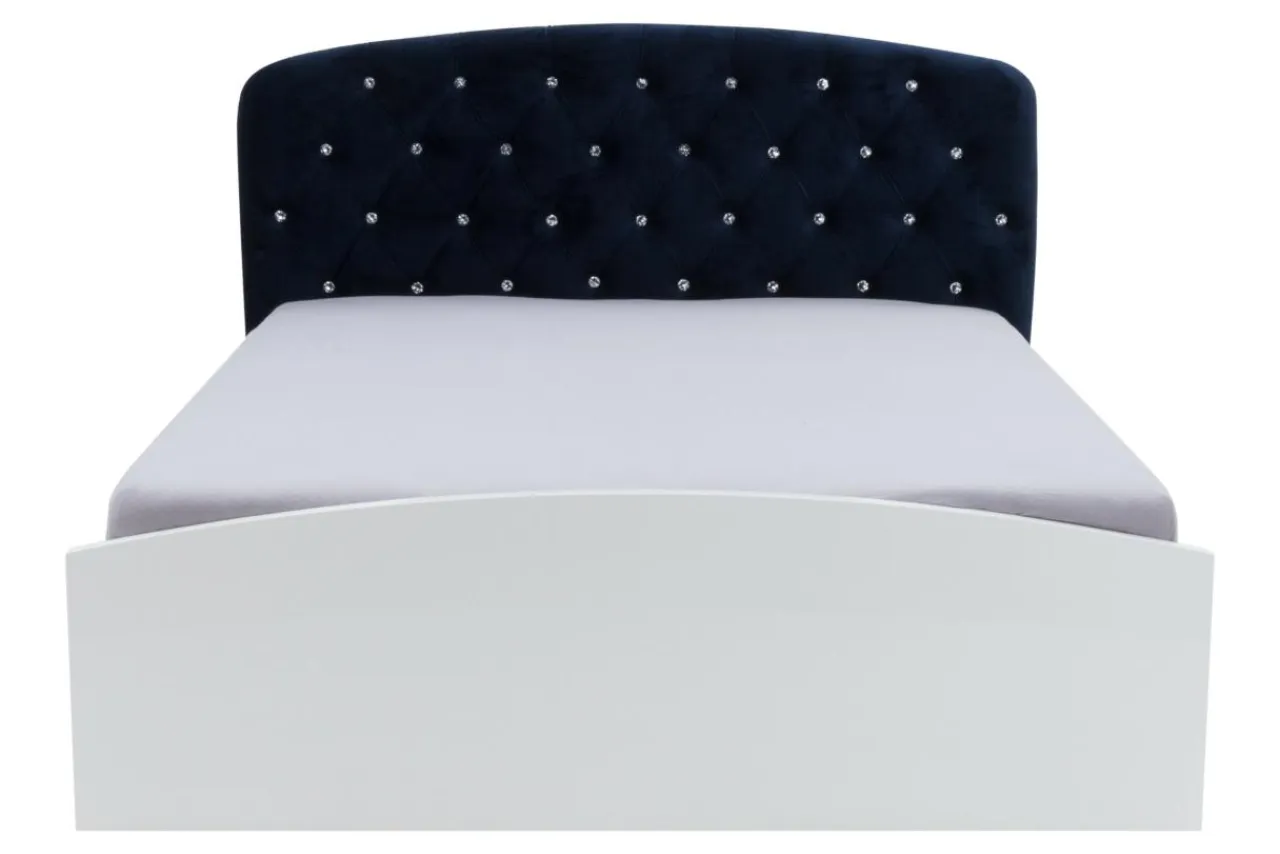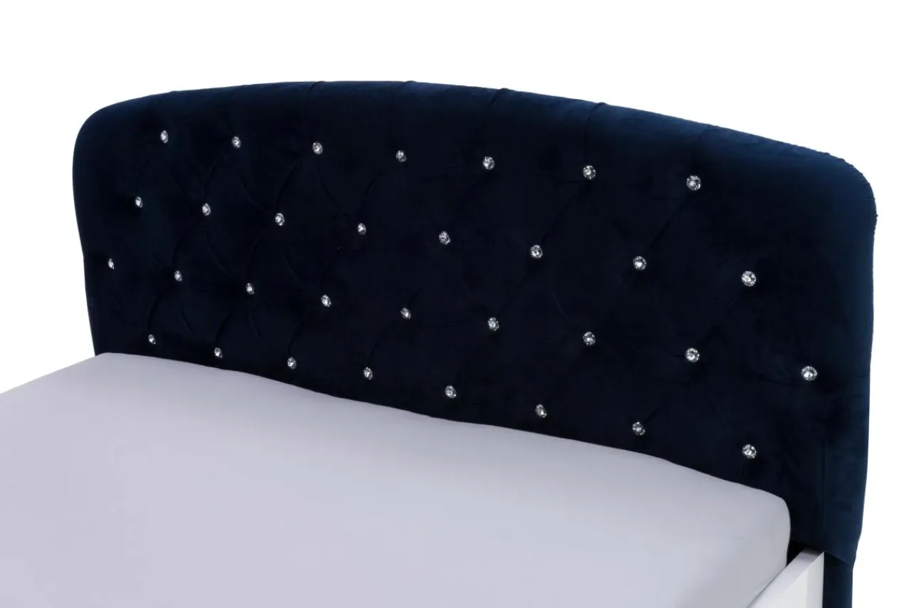 Elegancki pikowany zagłówek z przyjemnej w dotyku welurowej tkaniny nadaje łóżku luksusowy charakter.