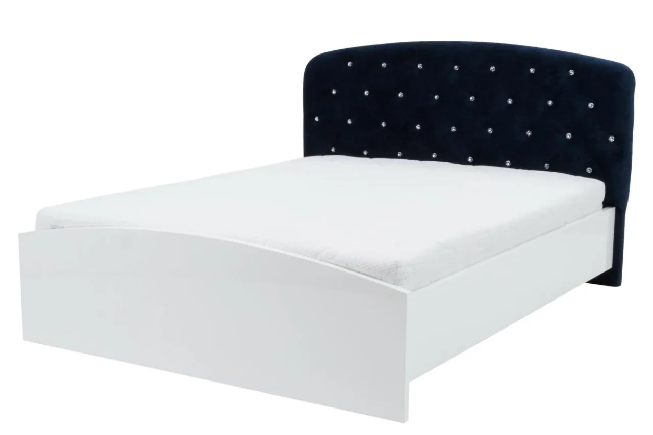 Boki oraz dolny szczyt łóżka zostały wykończone białym, połyskującym lakierem.