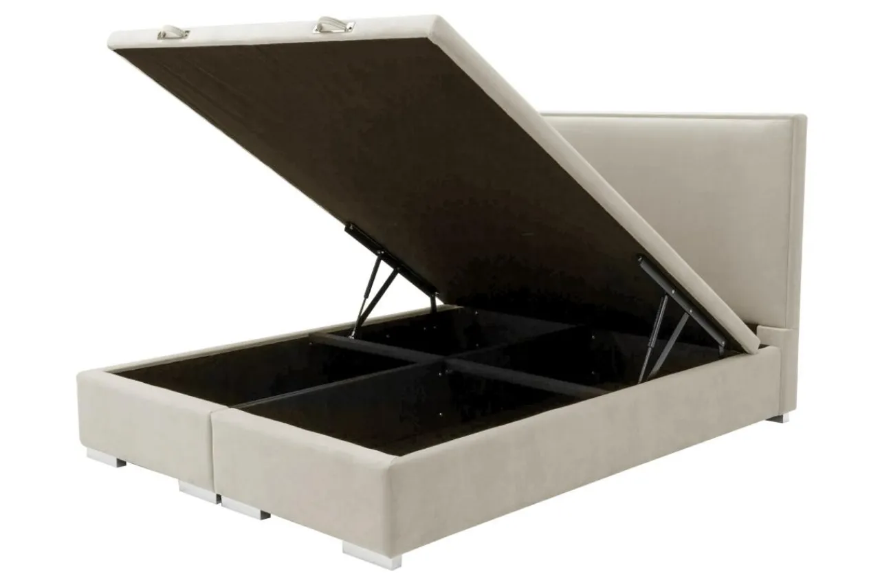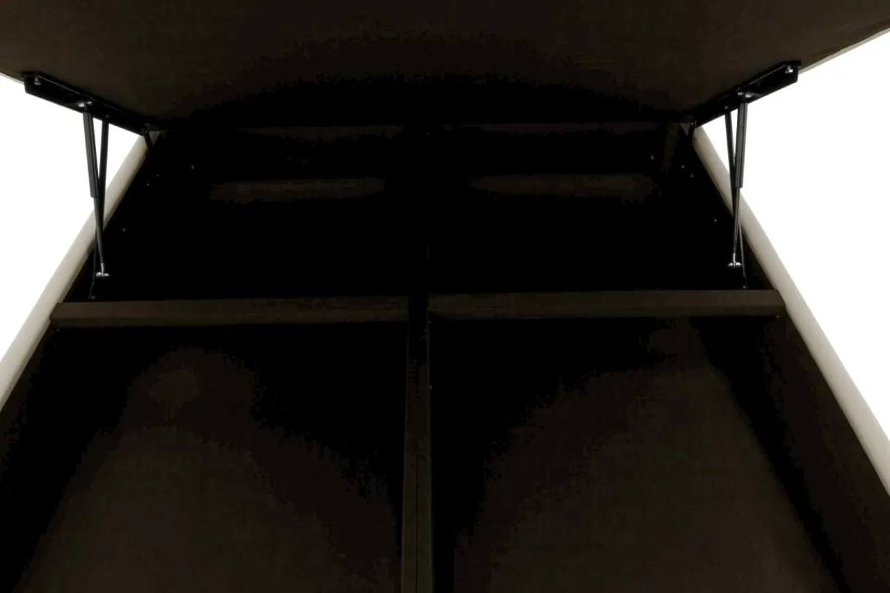 Łóżko posiada pojemnik, w którym pomieścisz komplet pościeli, koce i poduszki. Dostęp do niego uzyskasz po uniesieniu stelaża. Wysokość pojemnika wynosi 25 cm.