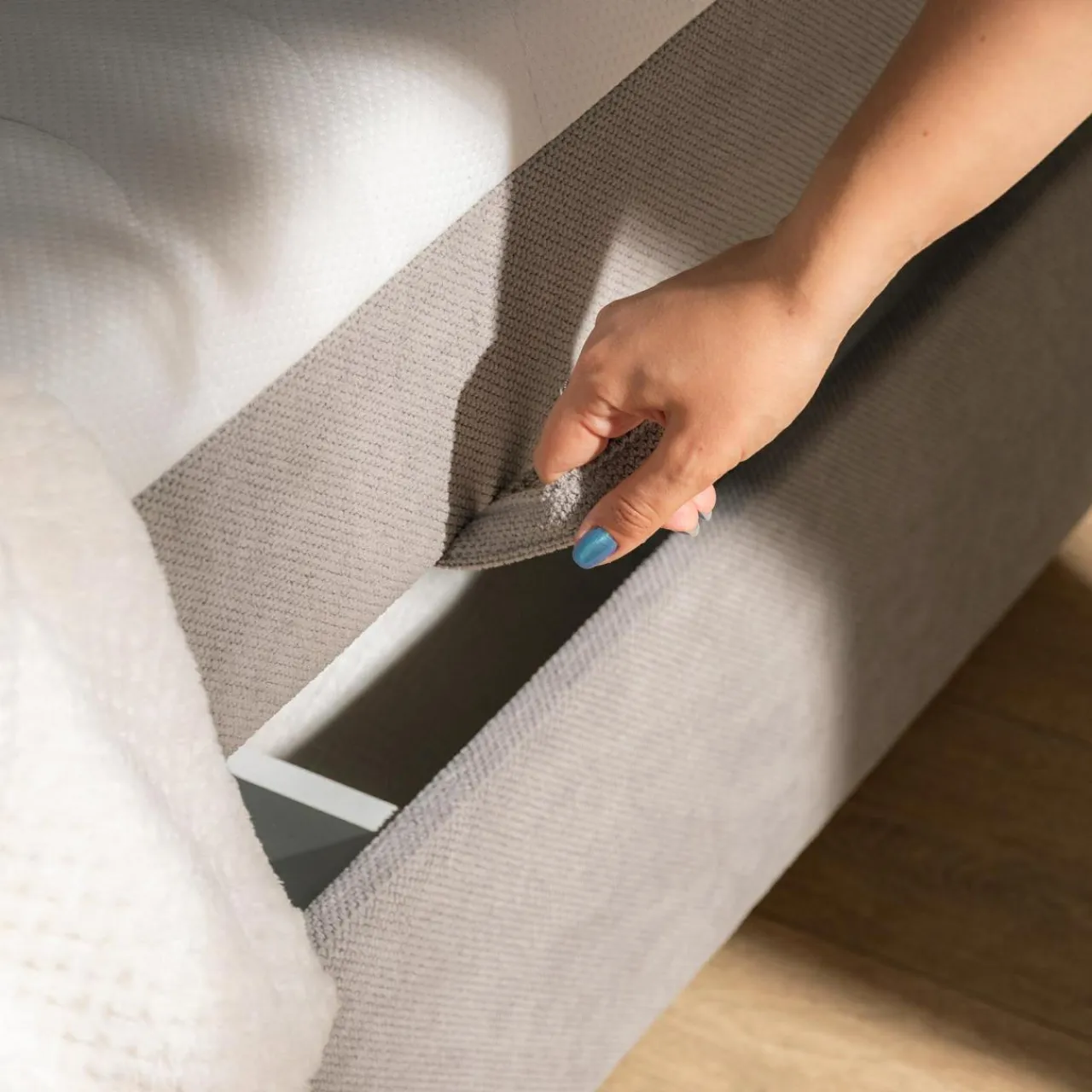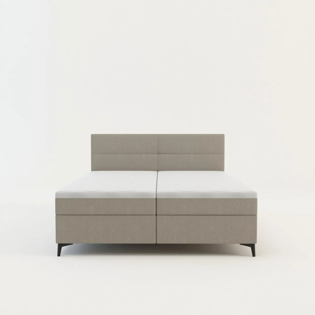 Beżowa tkanina, którą pokryto łóżko kontynentalne MARY wprowadzi do wnętrza kojącą atmosferę, która pozwoli Ci na głęboki oddech po zabieganym dniu.
