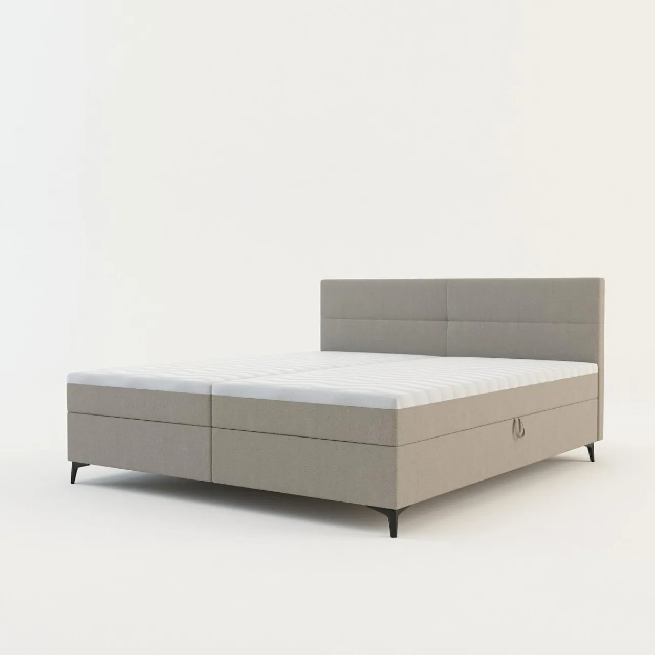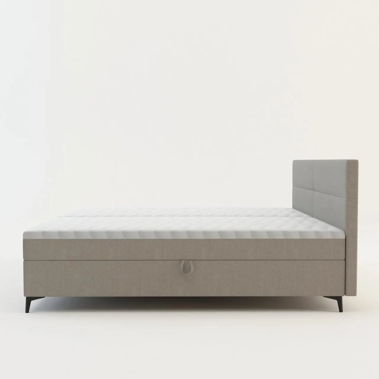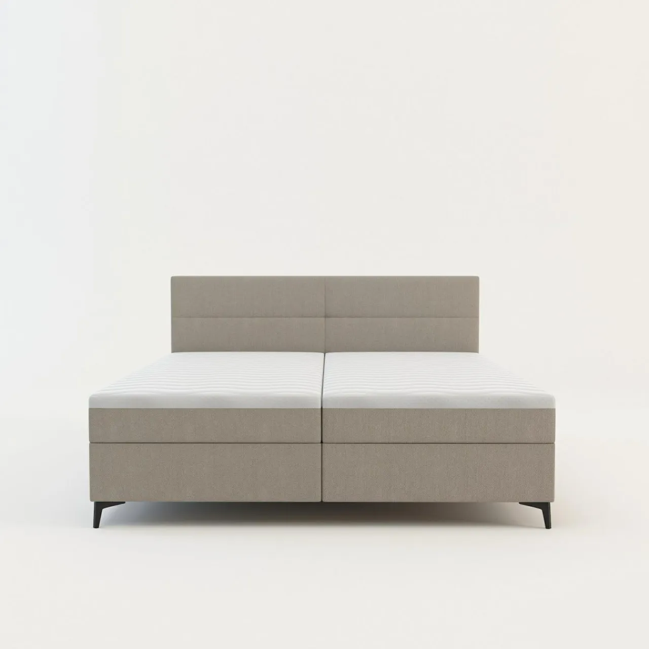 Beżowa tkanina, którą pokryto łóżko kontynentalne MARY wprowadzi do wnętrza kojącą atmosferę, która pozwoli Ci na głęboki oddech po zabieganym dniu.