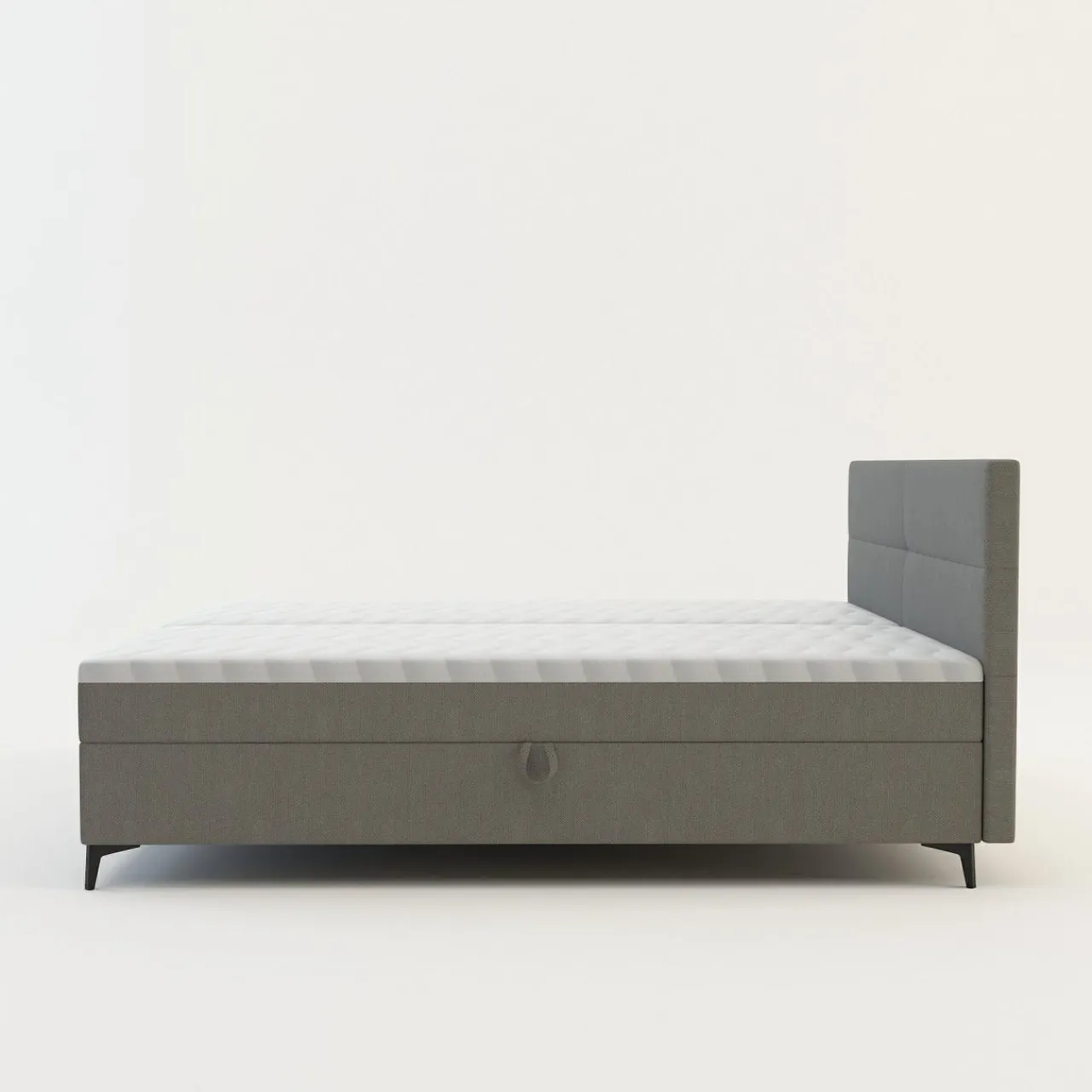 - Boki materaca zostały pokryte tą samą tkaniną co rama łóżka, przez co całość prezentuje się estetycznie.