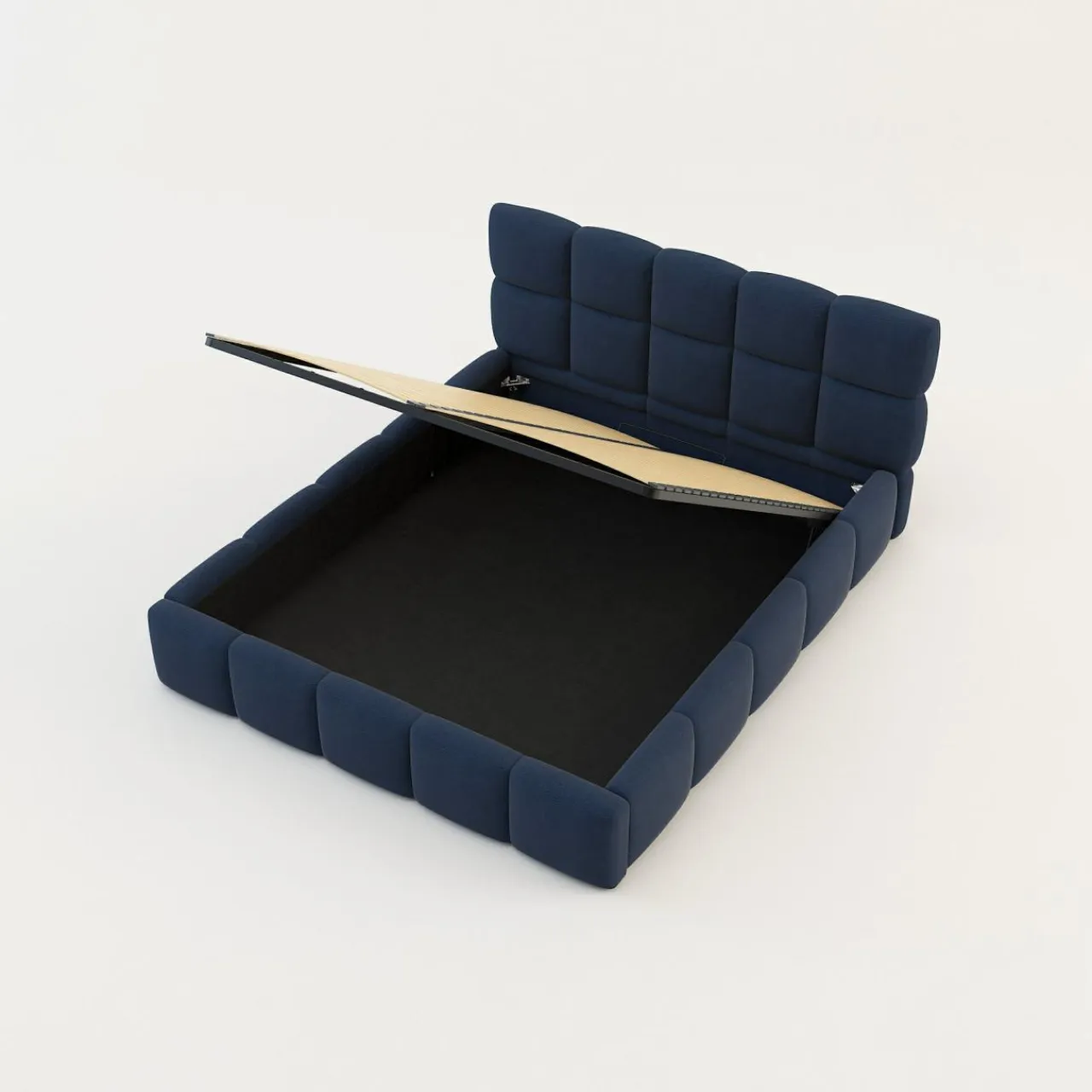 - Pod stelażem znajduje się pojemna skrzynia: wykorzystaj ją do przechowywania pościeli, koców lub innych tekstyliów.
