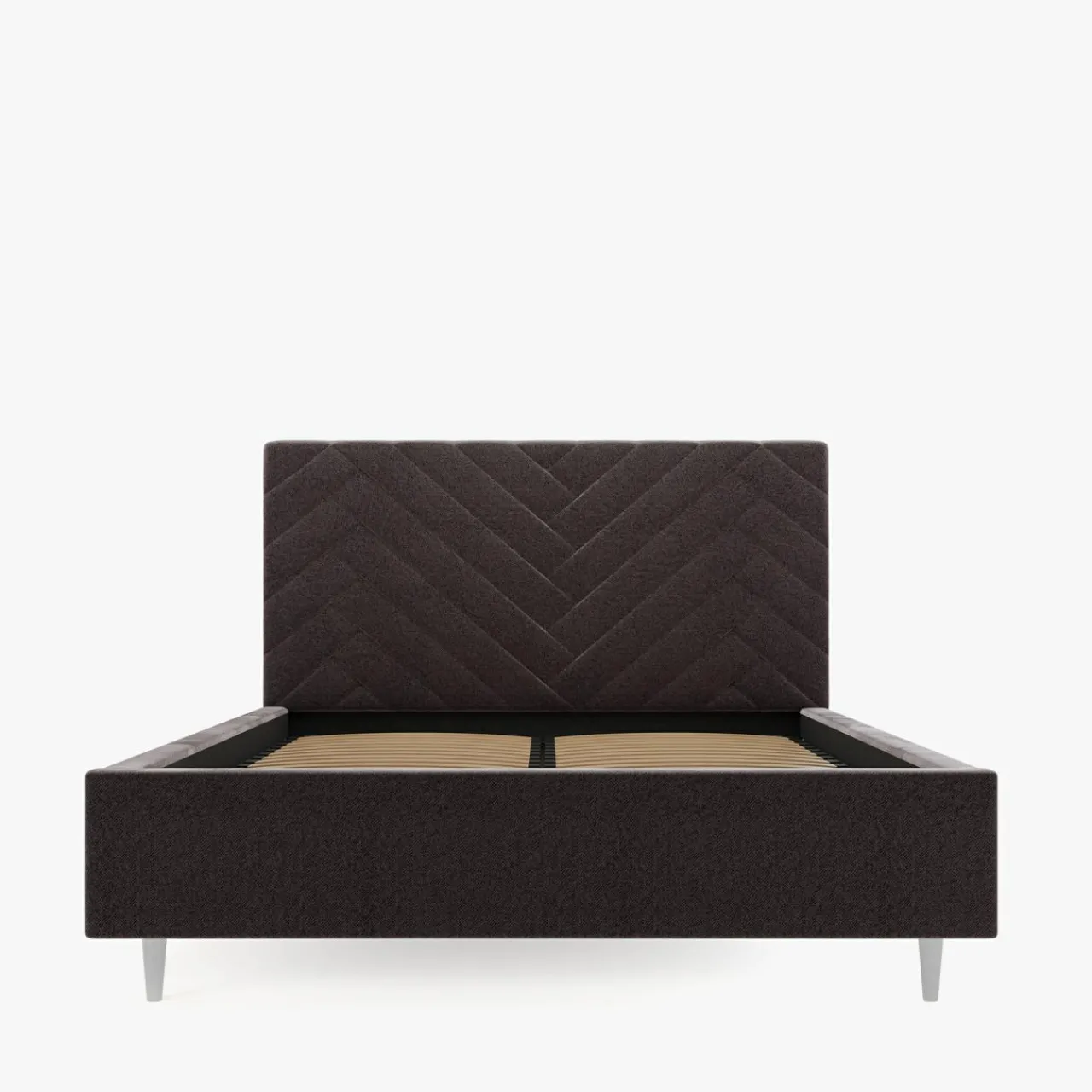 - Łóżko jest wyposażone w tapicerowaną ramę oraz stelaż, które stworzą komfortową powierzchnię spania dla 2 osób.