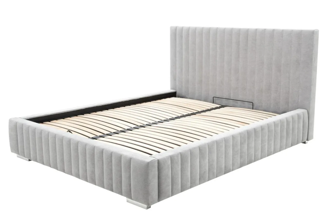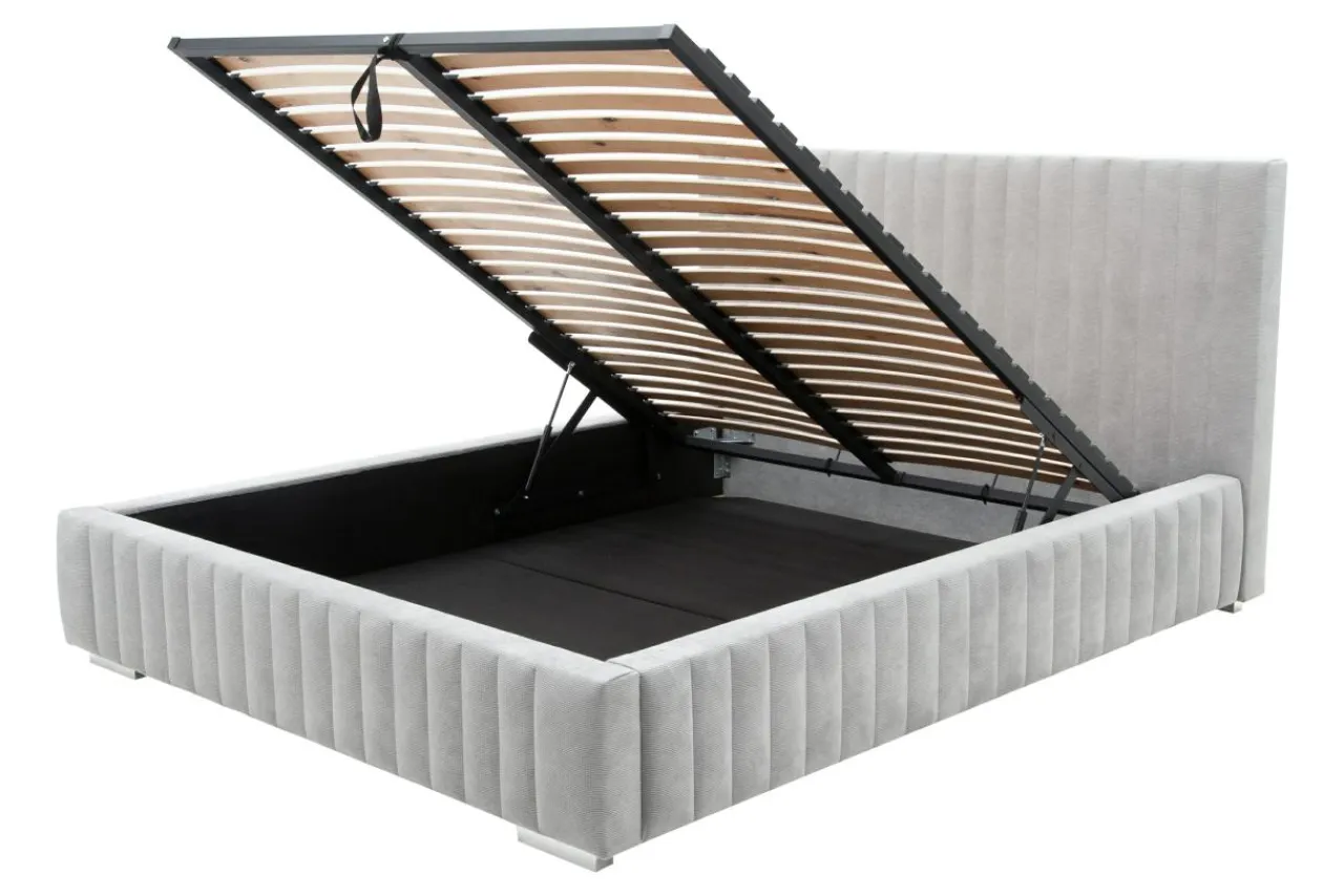 - Pod stelażem znajduje się pojemna skrzynia: wykorzystaj ją do przechowywania pościeli, koców lub innych tekstyliów.