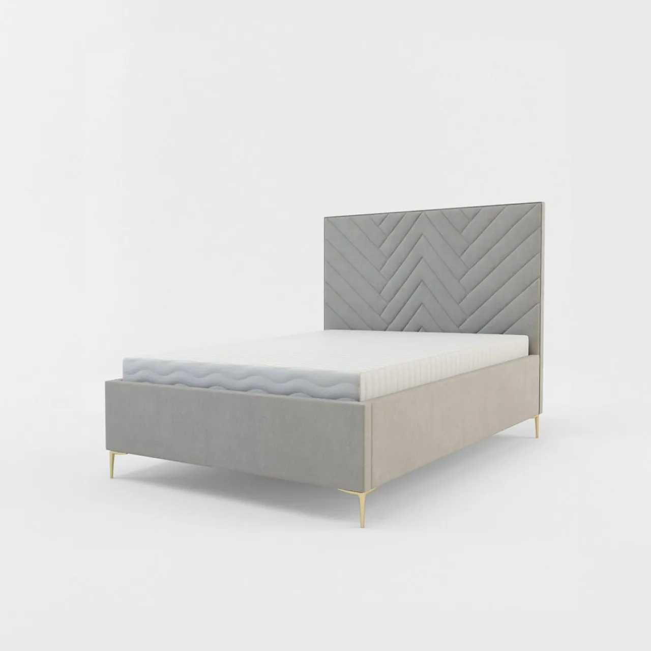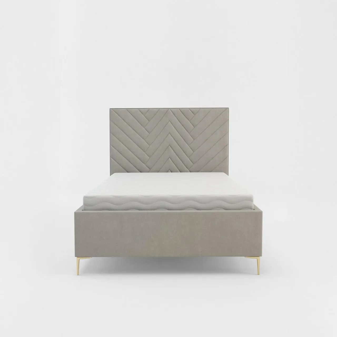 - Łóżko PINO ma charakterystyczne stalowe nóżki w pięknym, złotym kolorze i eleganckiej, szczotkowanej strukturze.