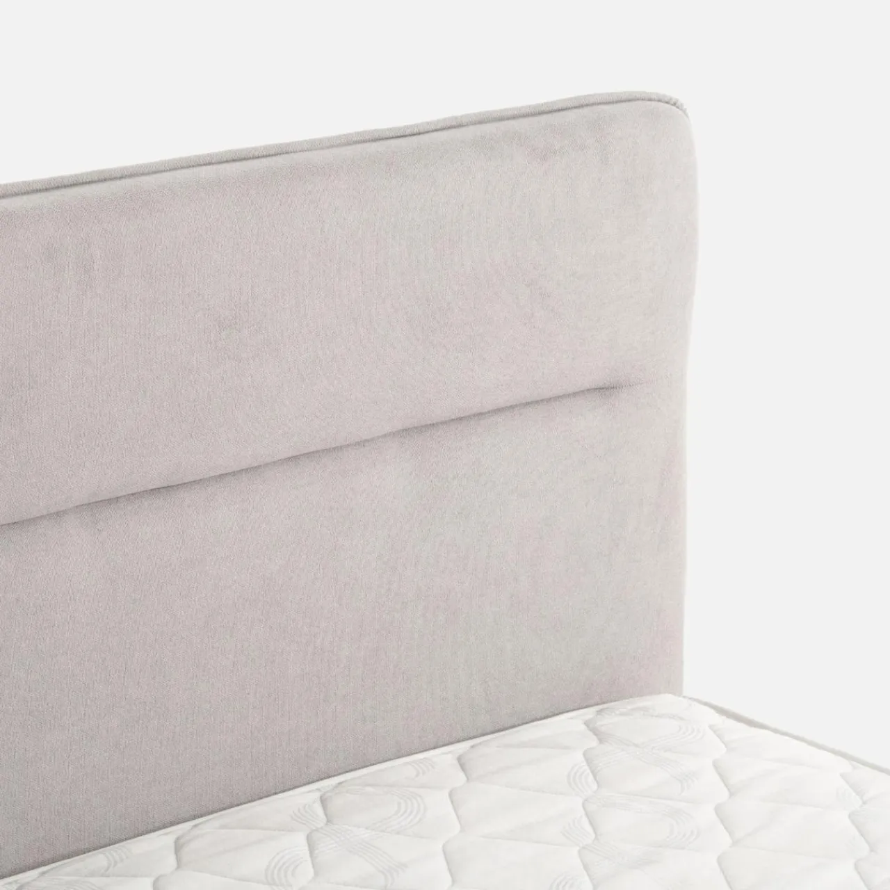 - Ozdobne przeszycie na wezgłowiu podkreśla miękką tkaninę obicia.