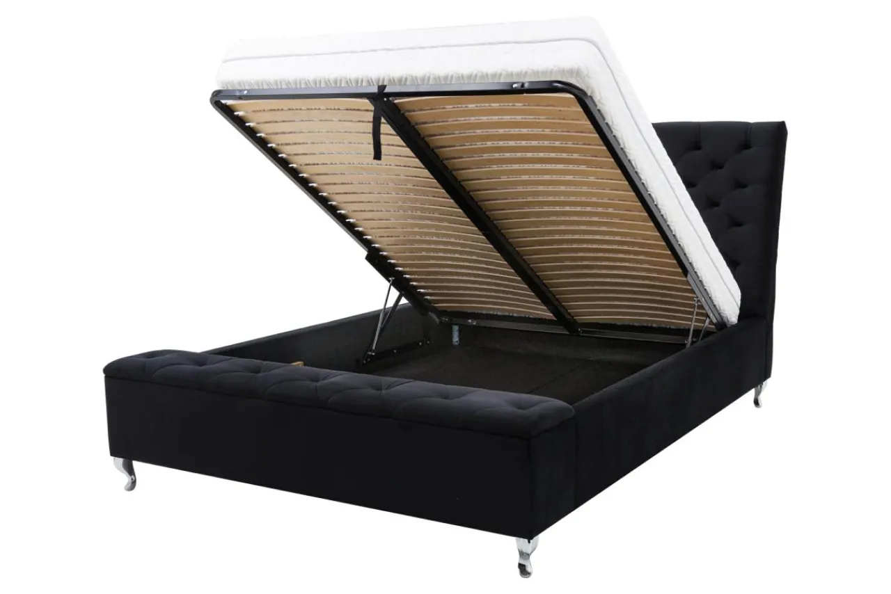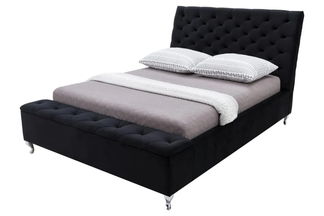 Tapicerowane łóżko z siedziskiem VELMA FULL to doskonały wybór do sypialni urządzonej w stylu glamour czy nowoczesnym. Czarna, welurowa tapicerka pomoże stworzyć w sypialni wyjątkowy nastrój.