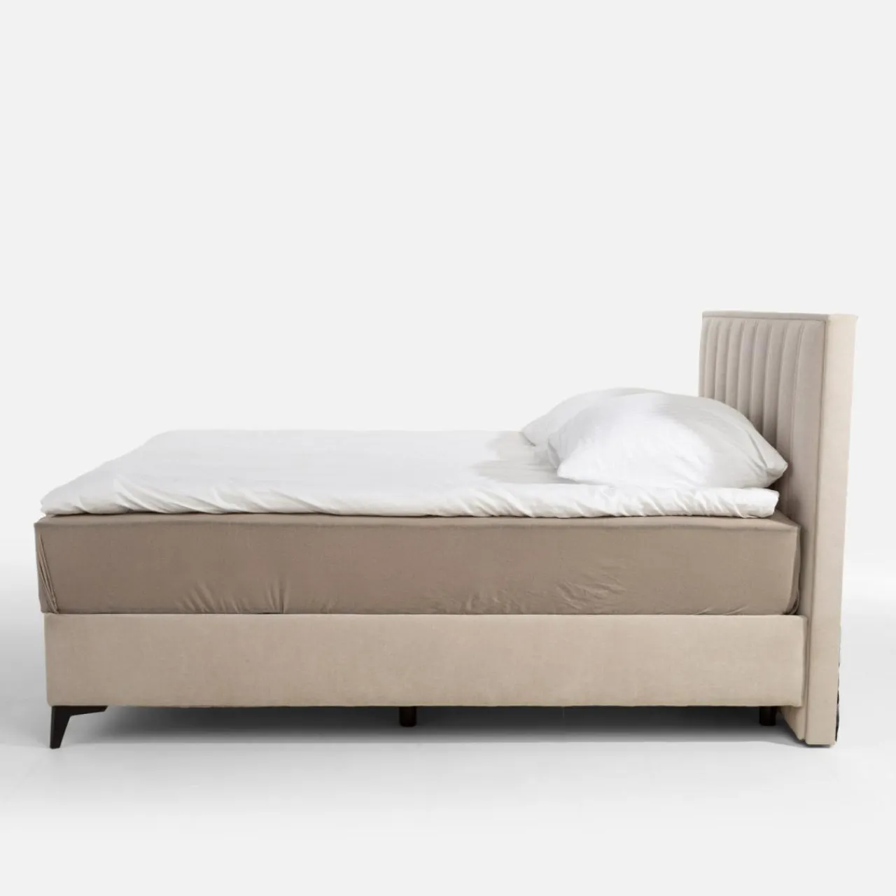 Łóżko kontynentalne beżowe VINCENZO 160×200 cm + materac