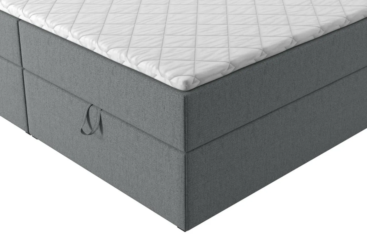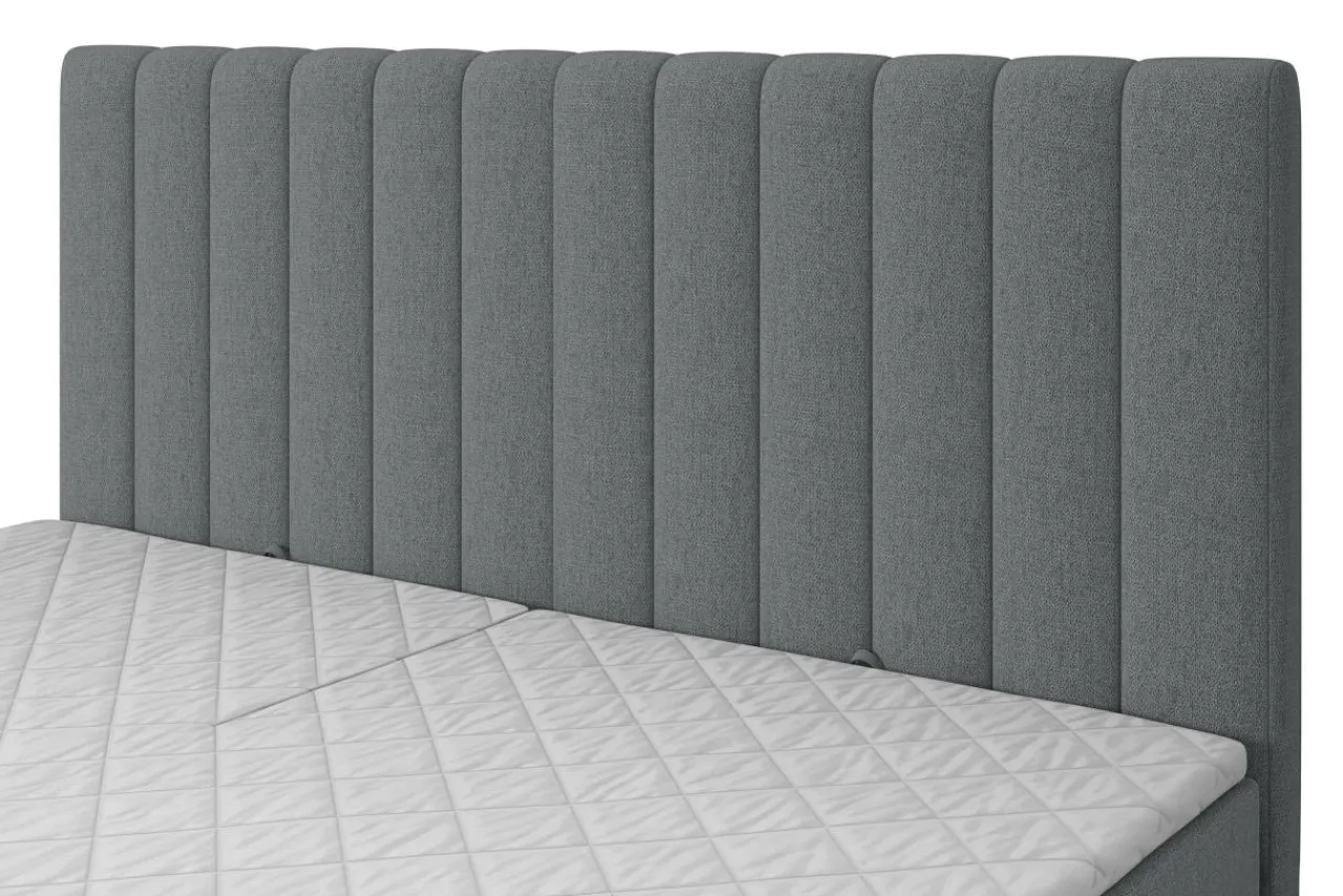 Łóżko jest pokryte tkaniną MATANA o wyrazistym splocie i przyjemnej w dotyku strukturze.