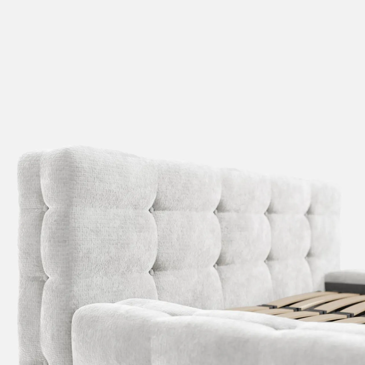 - Łóżko jest wyposażone w tapicerowana ramę oraz stelaż, które stworzą komfortową przestrzeń do spania.