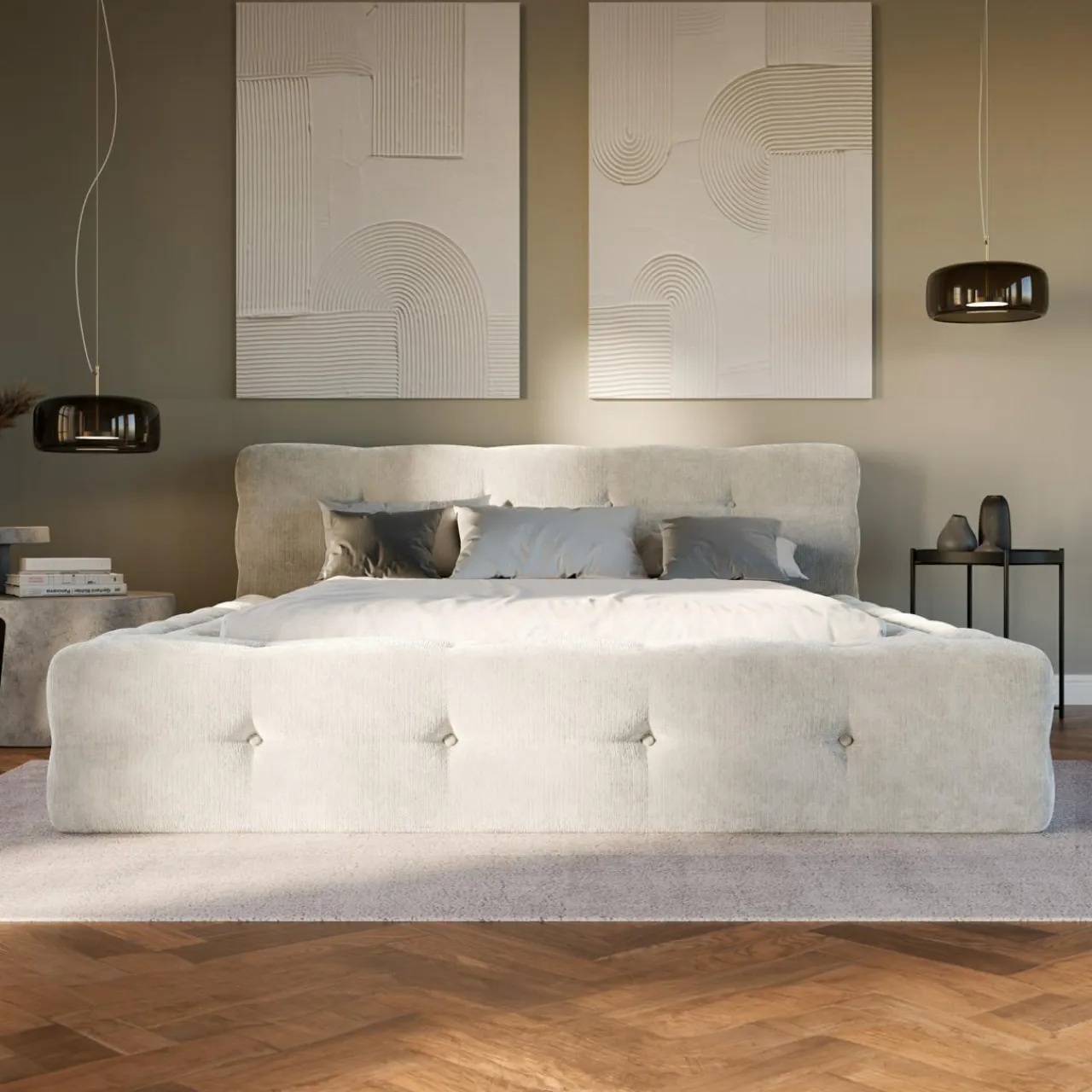 Marzysz o przytulnej sypialni? Organiczne kształty i beżowy kolor łóżka ANNA napełnią Twoje wnętrze spokojem i harmonią.