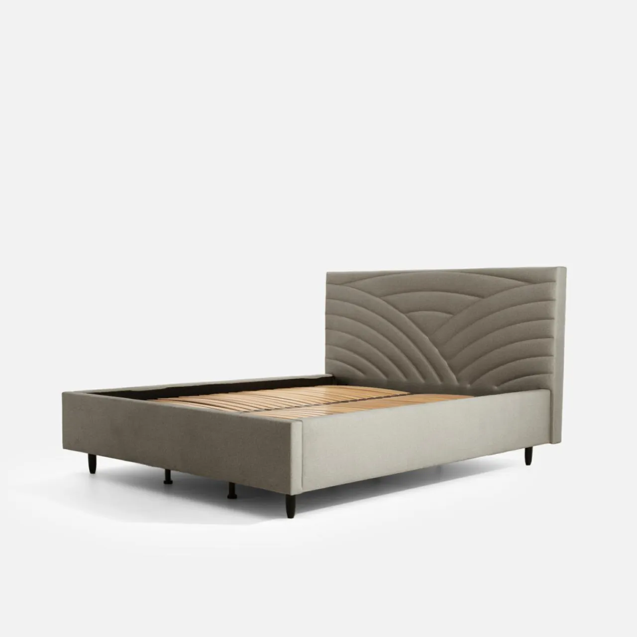- Łóżko jest wyposażone w tapicerowaną ramę oraz stelaż, które stworzą komfortową powierzchnię spania dla 2 osób.