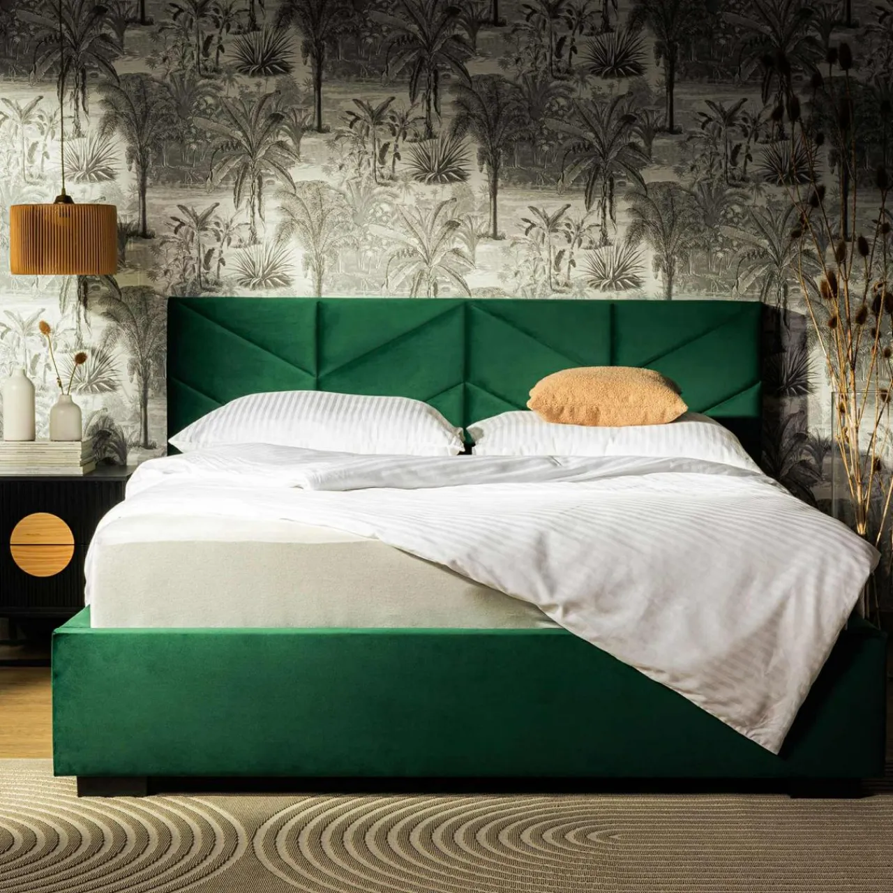 Łóżko VIVIANE stworzy w Twojej sypialni przytulną przestrzeń, w której odpoczniesz po zabieganym dniu. Wieczorem oprzesz się wygodnie na miękkim wezgłowiu, sięgnij po dobrą lekturę i rozkoszuj się błogością.
