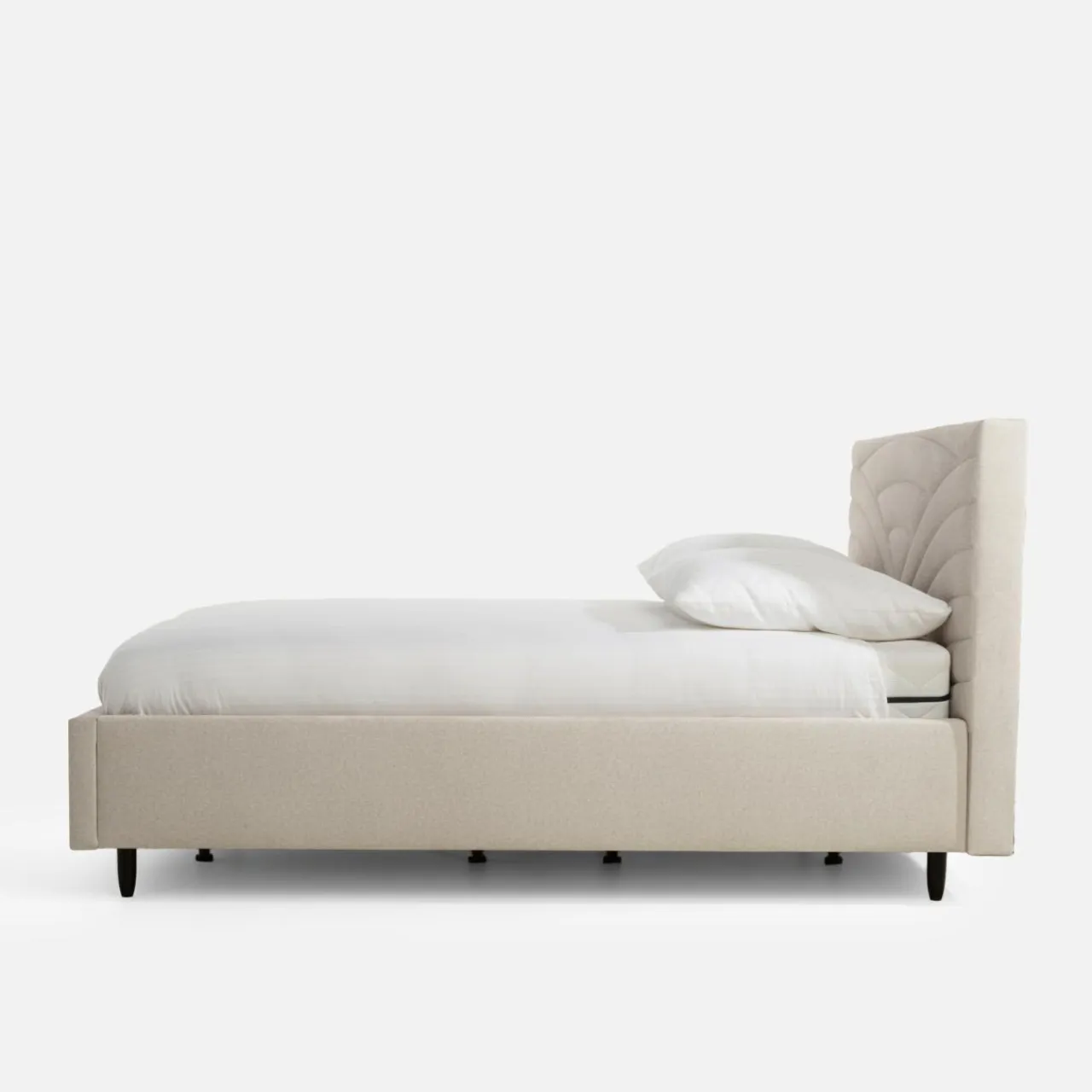 - Łóżko jest wyposażone w tapicerowaną ramę oraz stelaż, które stworzą komfortową powierzchnię spania dla 2 osób.