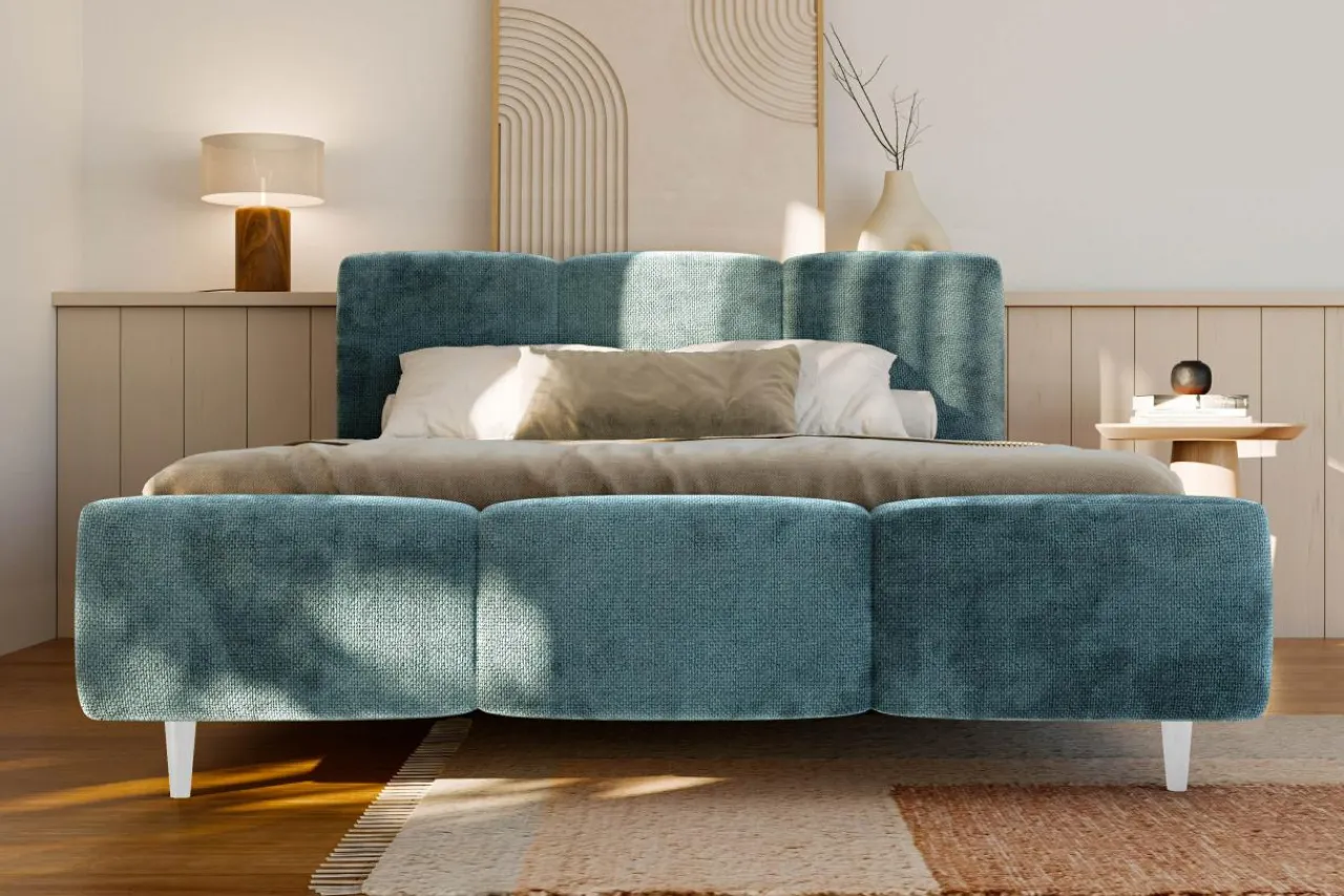 Połóż się i odetchnij. Łóżko ERICA w niebieskim kolorze stworzy w Twojej sypialni atmosferę spokoju i błogości.