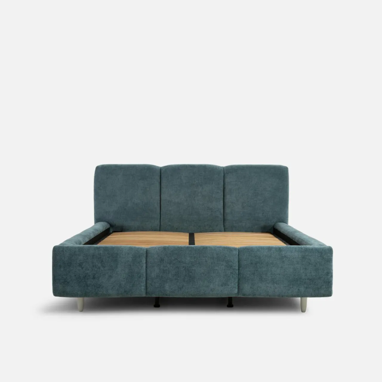 - Łóżko jest wyposażone w tapicerowaną ramę oraz stelaż, które stworzą komfortową powierzchnię spania dla 2 osób.