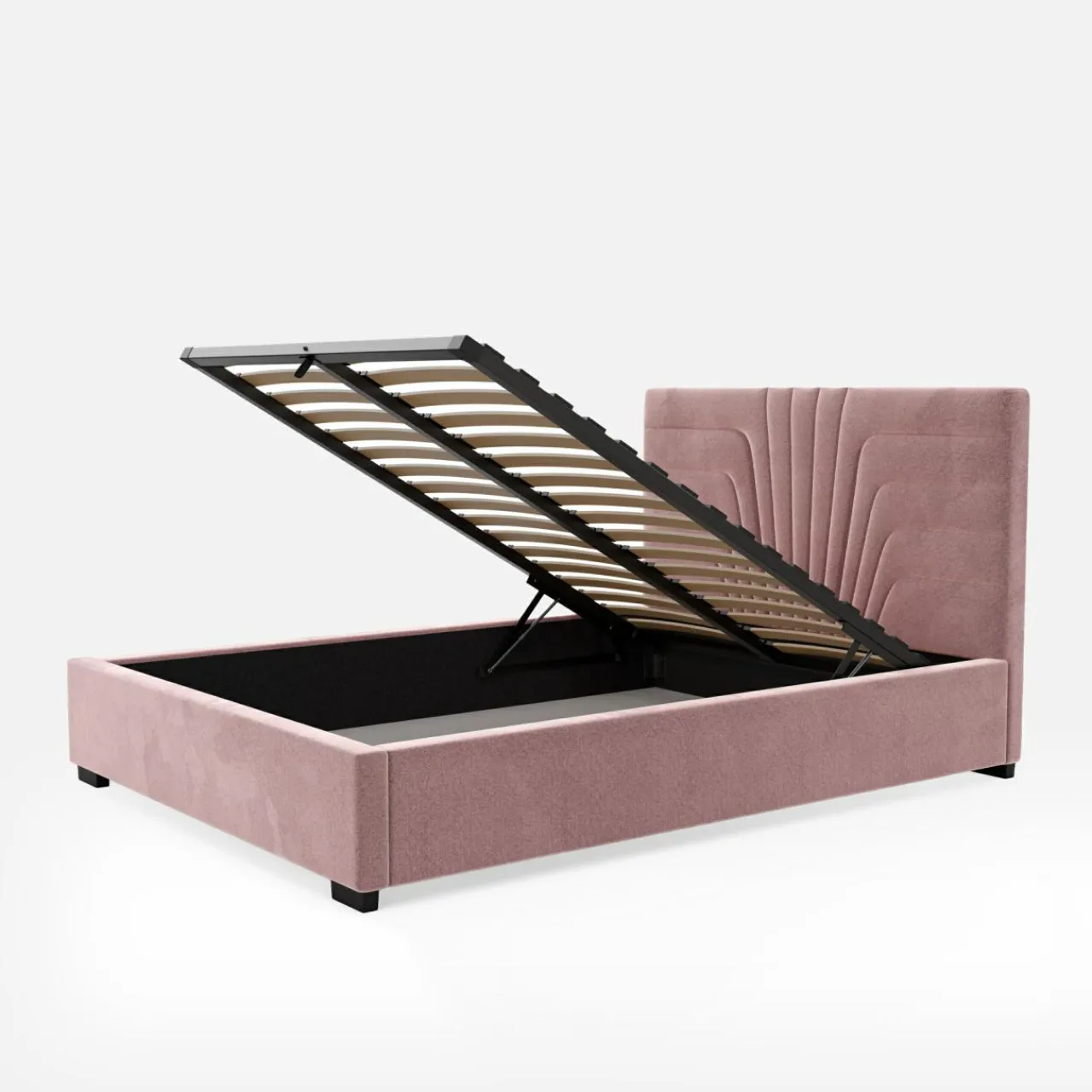 - Pojemnik pod stelażem da Ci przestrzeń, w której przechowasz pościel i inne domowe tekstylia. Dostęp do niego ułatwi Ci podnośnik gazowy.