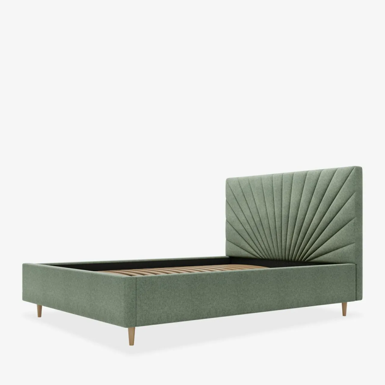 - Łóżko jest wyposażone w tapicerowaną ramę oraz stelaż, które stworzą komfortową powierzchnię spania dla 2 osób.