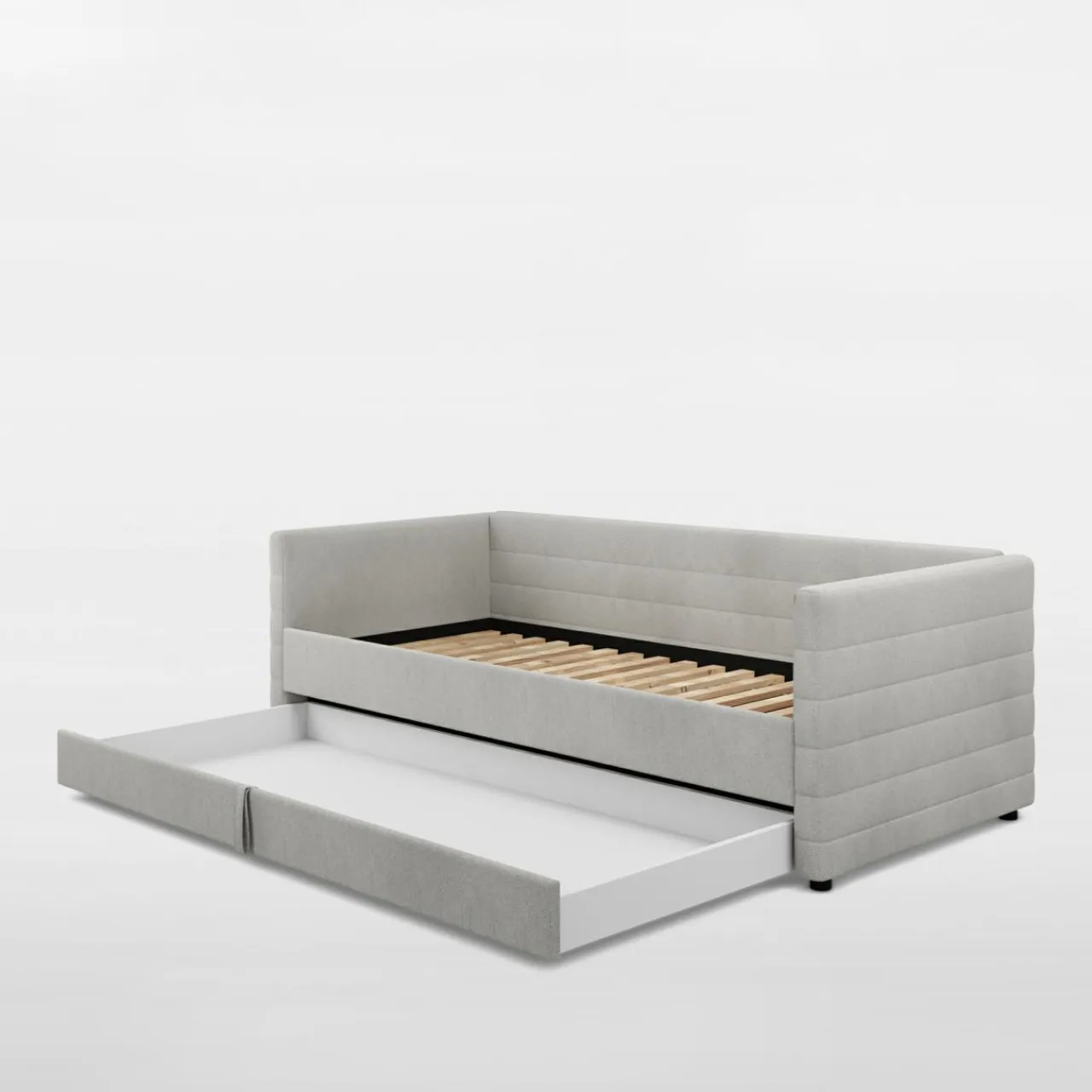 Łóżko LOLO posiada dużą szufladę z pełnym wysuwem, którą możesz zmienić w dodatkowe miejsce do spania, gdy Twoja pociecha urządzi u siebie nocowanie.