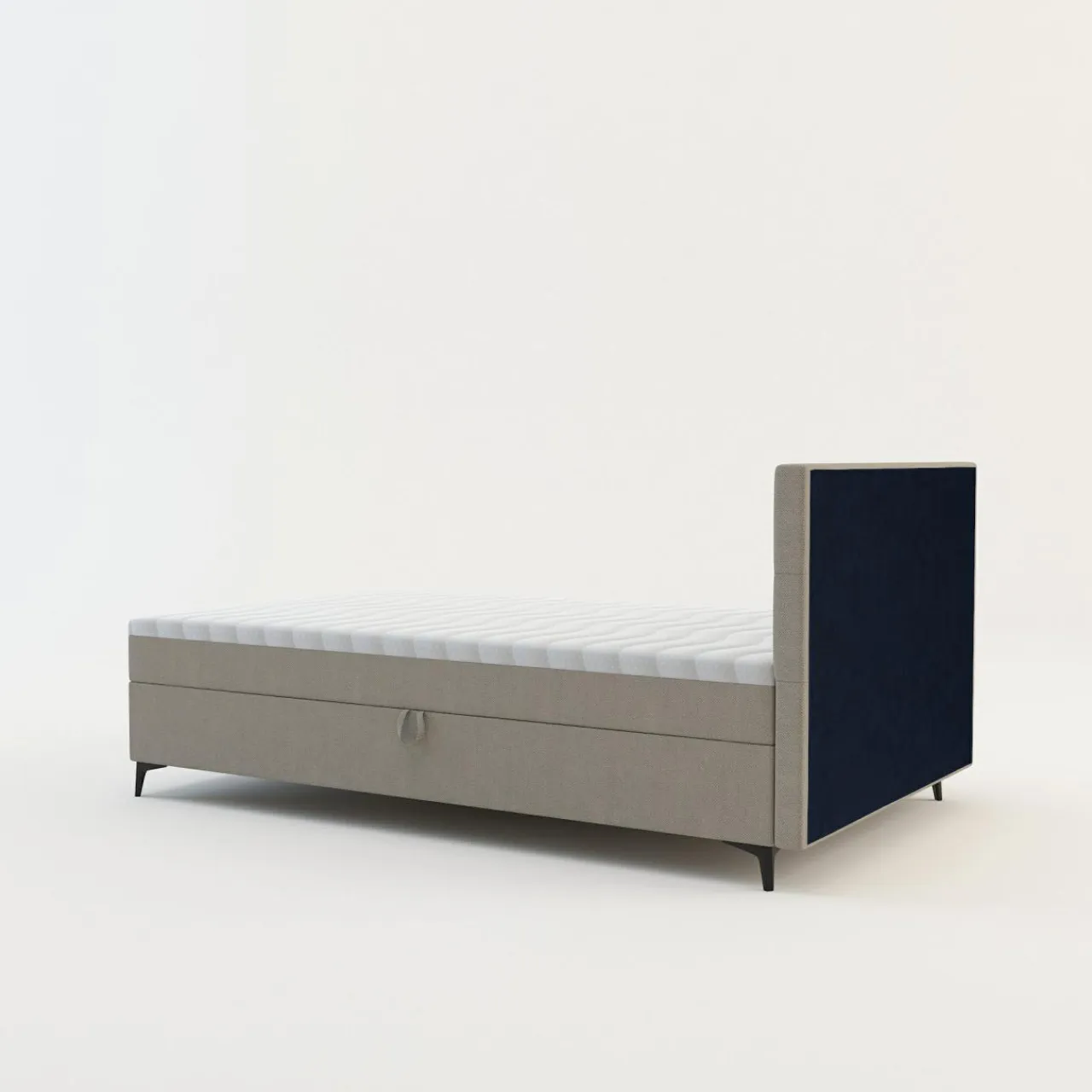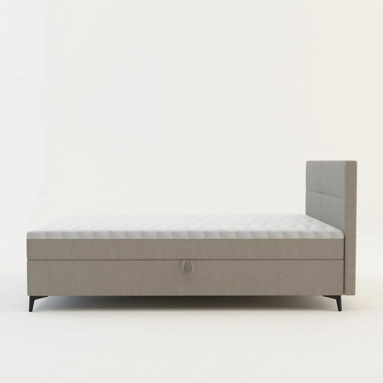 - Boki materaca zostały pokryte tą samą tkaniną co rama łóżka, przez co całość prezentuje się estetycznie.