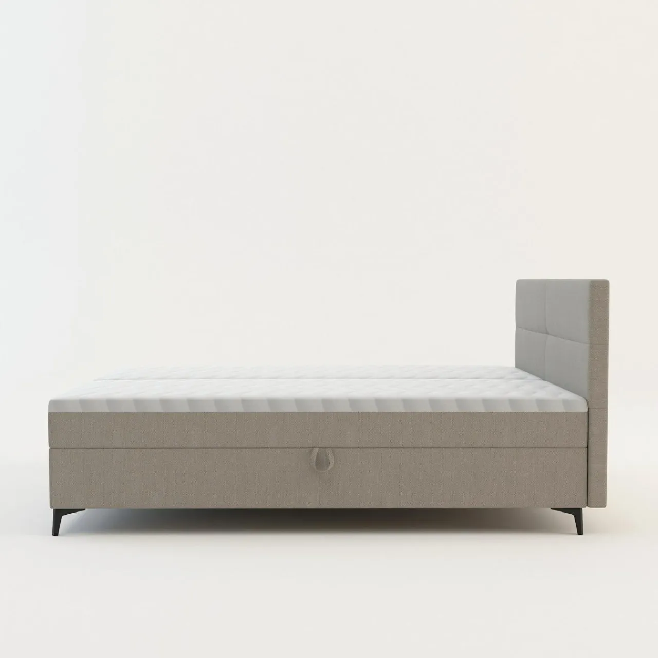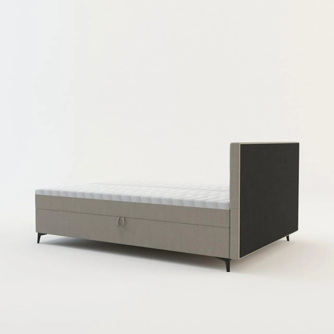 - Boki materaca zostały pokryte tą samą tkaniną co rama łóżka, przez co całość prezentuje się estetycznie.