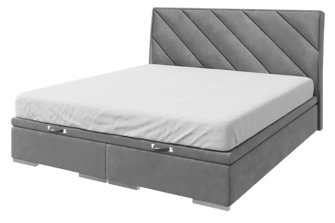 - Łóżko zostało wykończone tkaniną MAGIC VELVET w szarym kolorze.