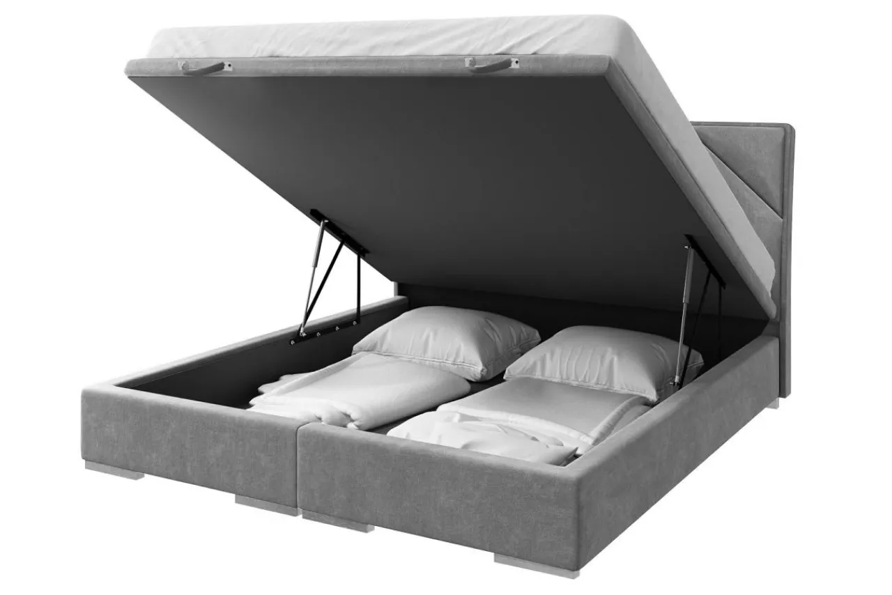 Łóżko LEONARDO KP spełni Twoje oczekiwania. Jest też wyposażone pojemnik na pościel i zachwycającą tapicerkę w szarym kolorze.