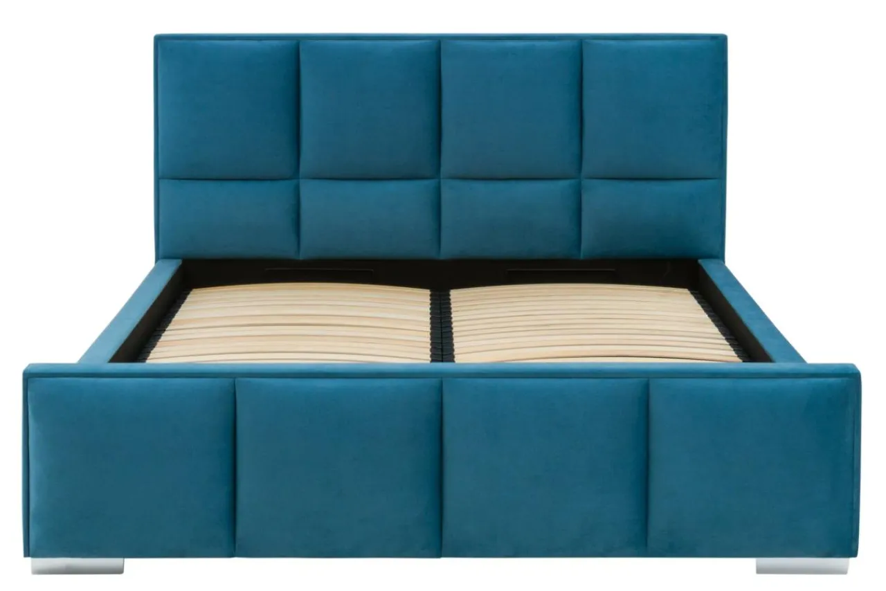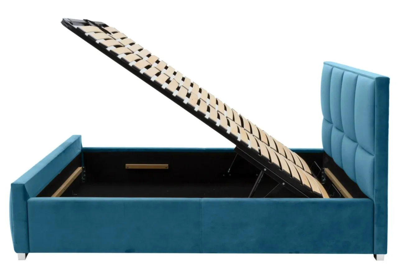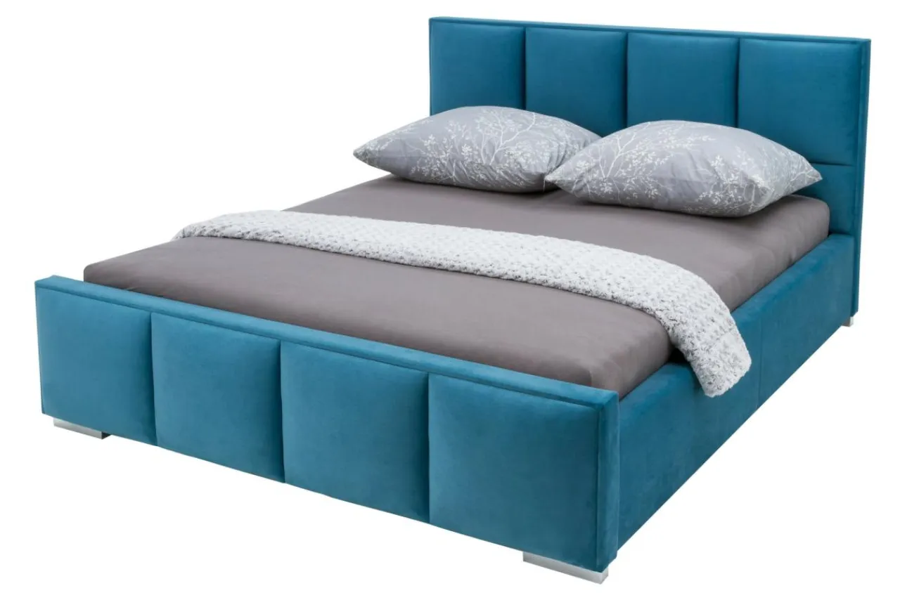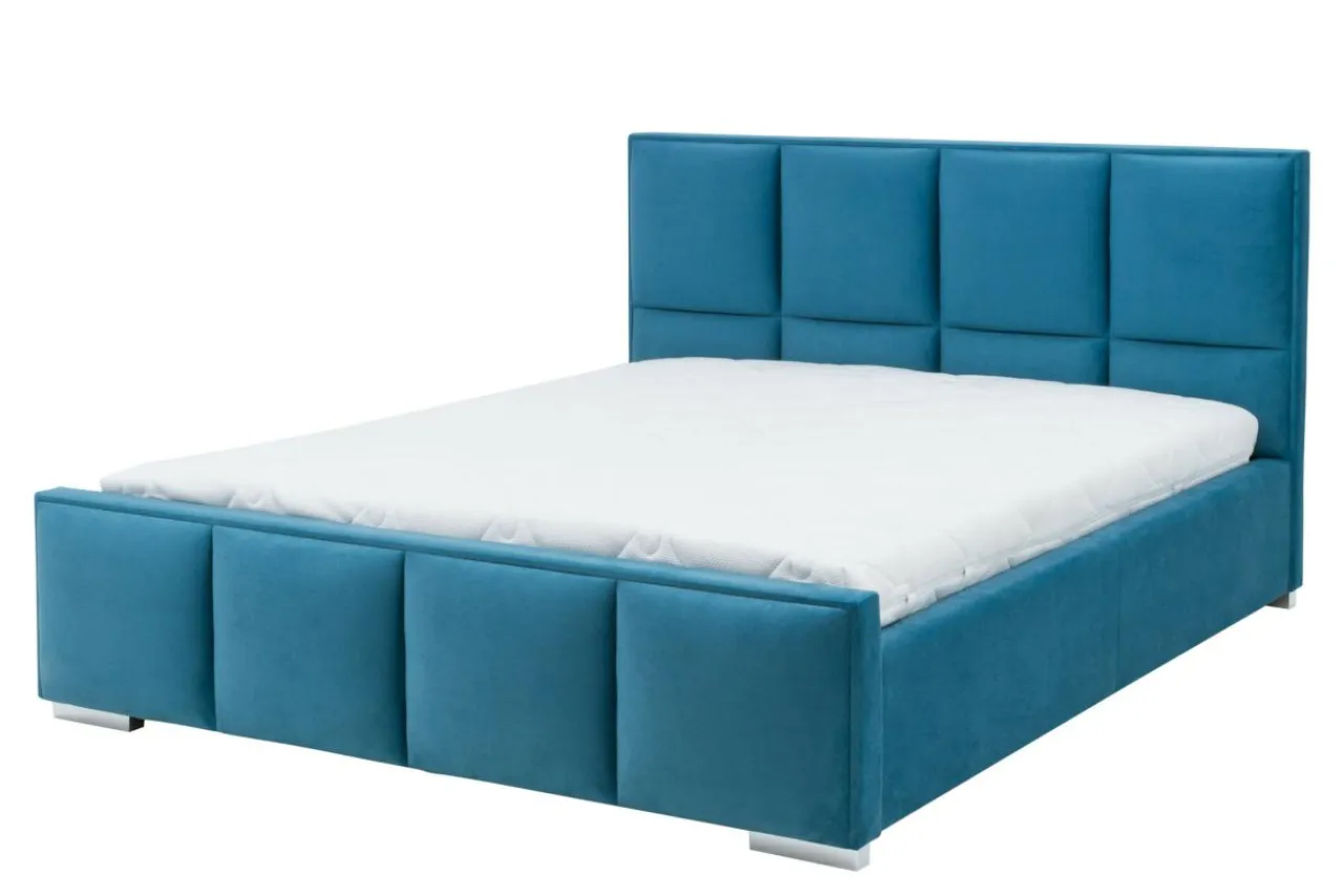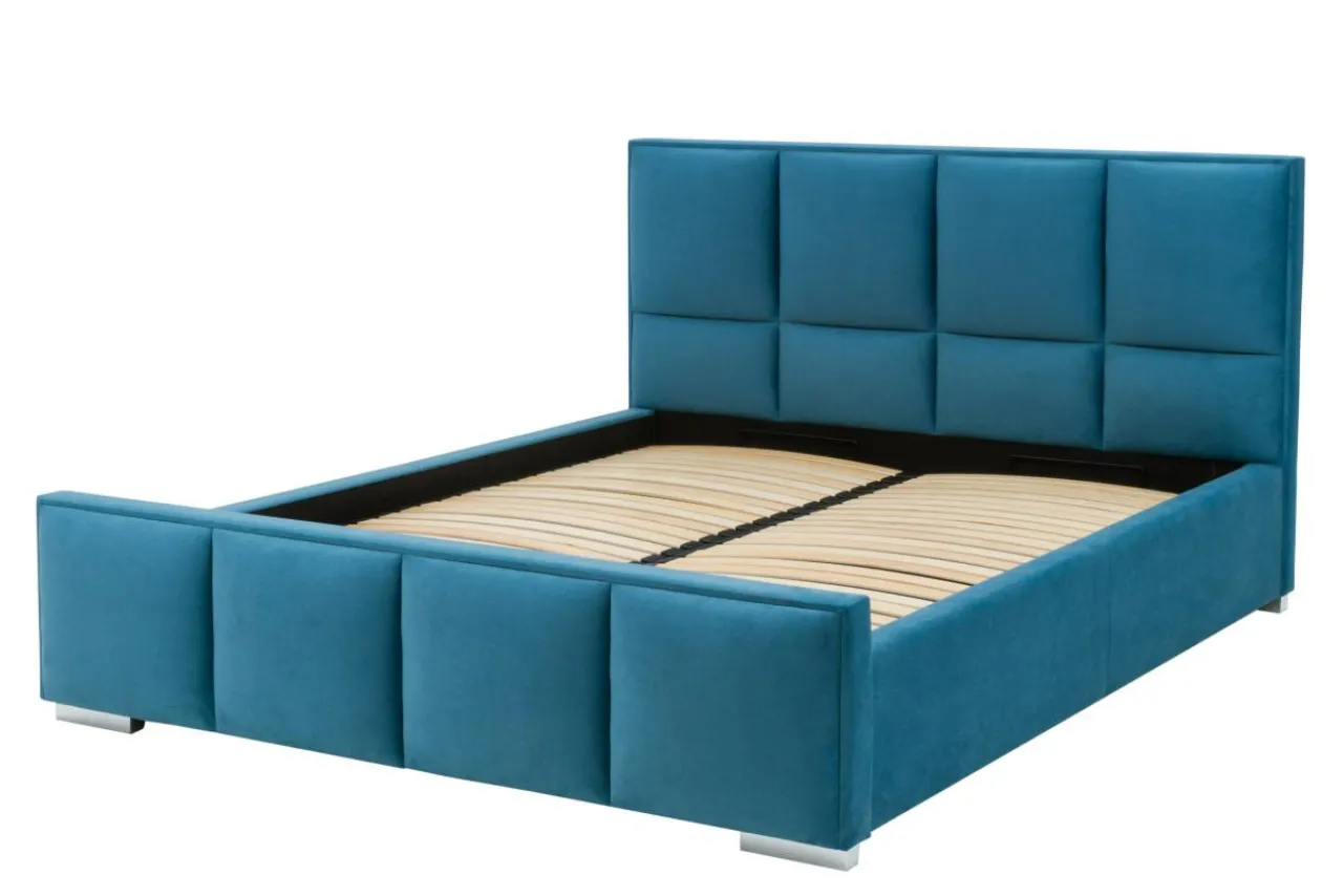 Łóżko FABRIZIO SQUERE sprawia iście królewskie wrażenie. Tapicerka w pięknym odcieniu błękitu oraz pikowanie pokrywające szczyty łóżka to detale nadające meblowi ekskluzywny wygląd. Wyposażone w stelaż i pojemnik na pościel, zapewnia komfort snu i wygodę.