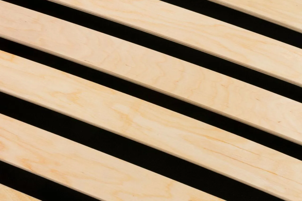 - Stelaż tworzy 48 listewek ze sklejki bukowo – brzozowej, umieszczonych w koszulce w tworzywa na metalowych profilach.