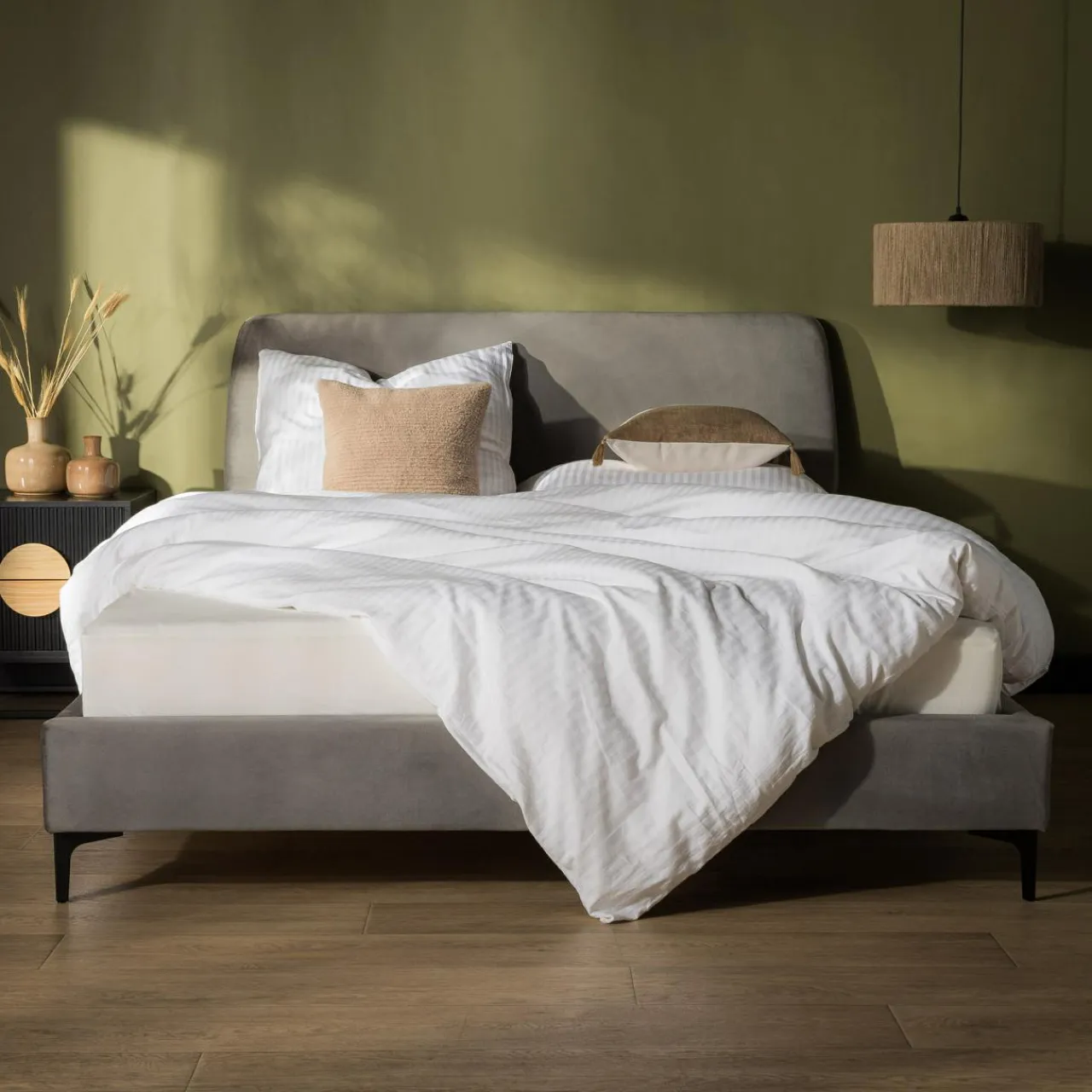 Oprzyj się i przeczytaj rozdział ulubionej książki przed snem. Tapicerowane wezgłowie będzie wygodnym podparciem pod plecy i dodatkowo ochroni ścianę przed zabrudzeniami.