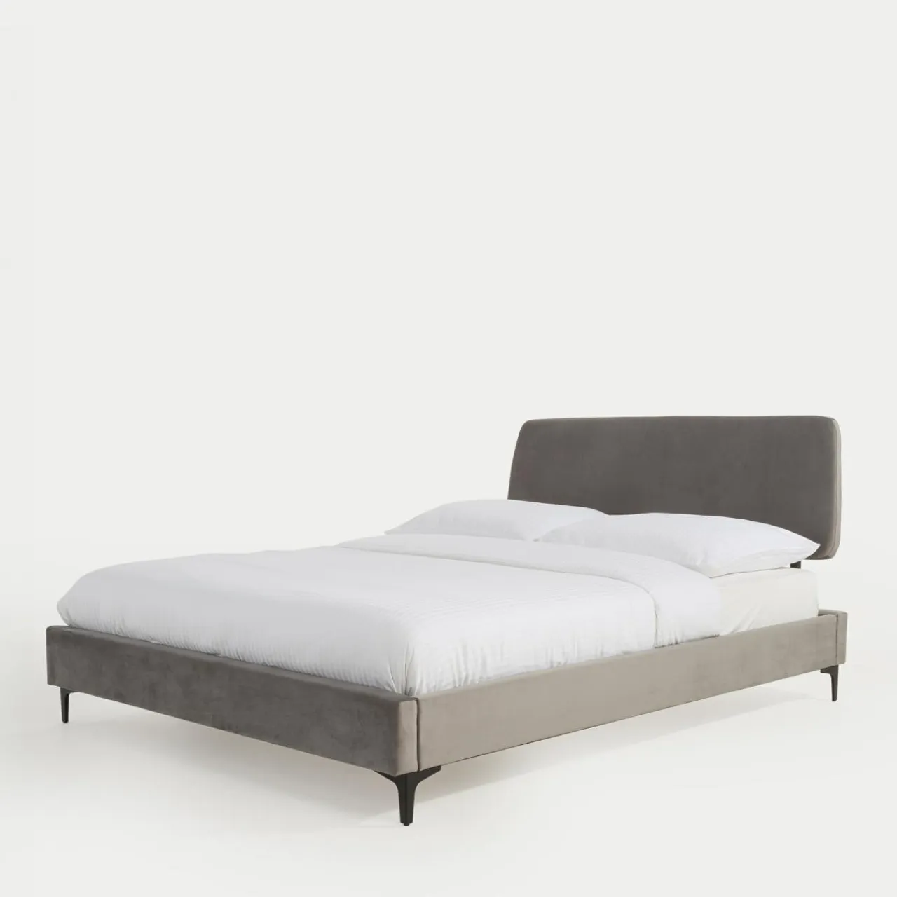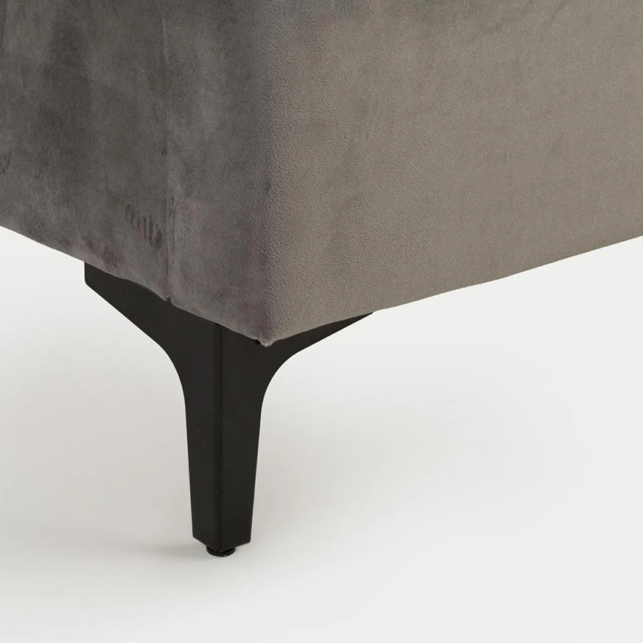 - Obicie zostało wykonane z miękkiego weluru w szarym kolorze.