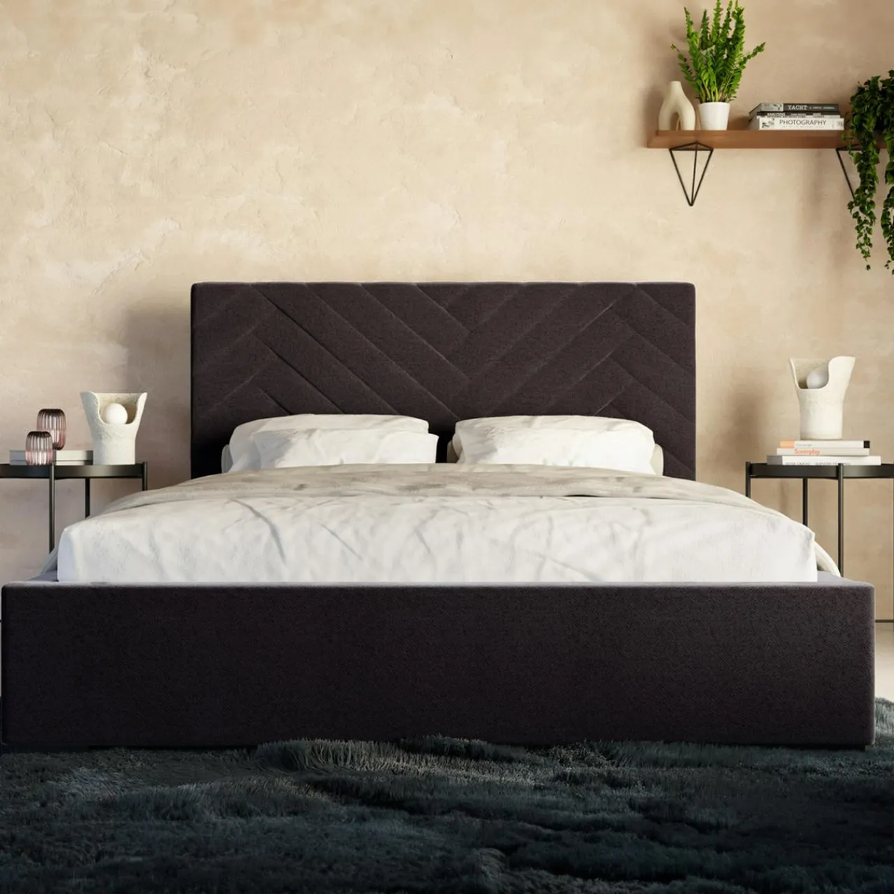 - Łóżko jest wyposażone w tapicerowaną ramę oraz stelaż, które stworzą komfortową powierzchnię spania dla 2 osób.