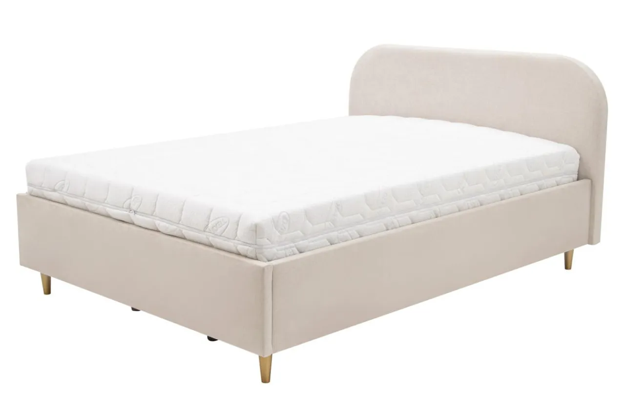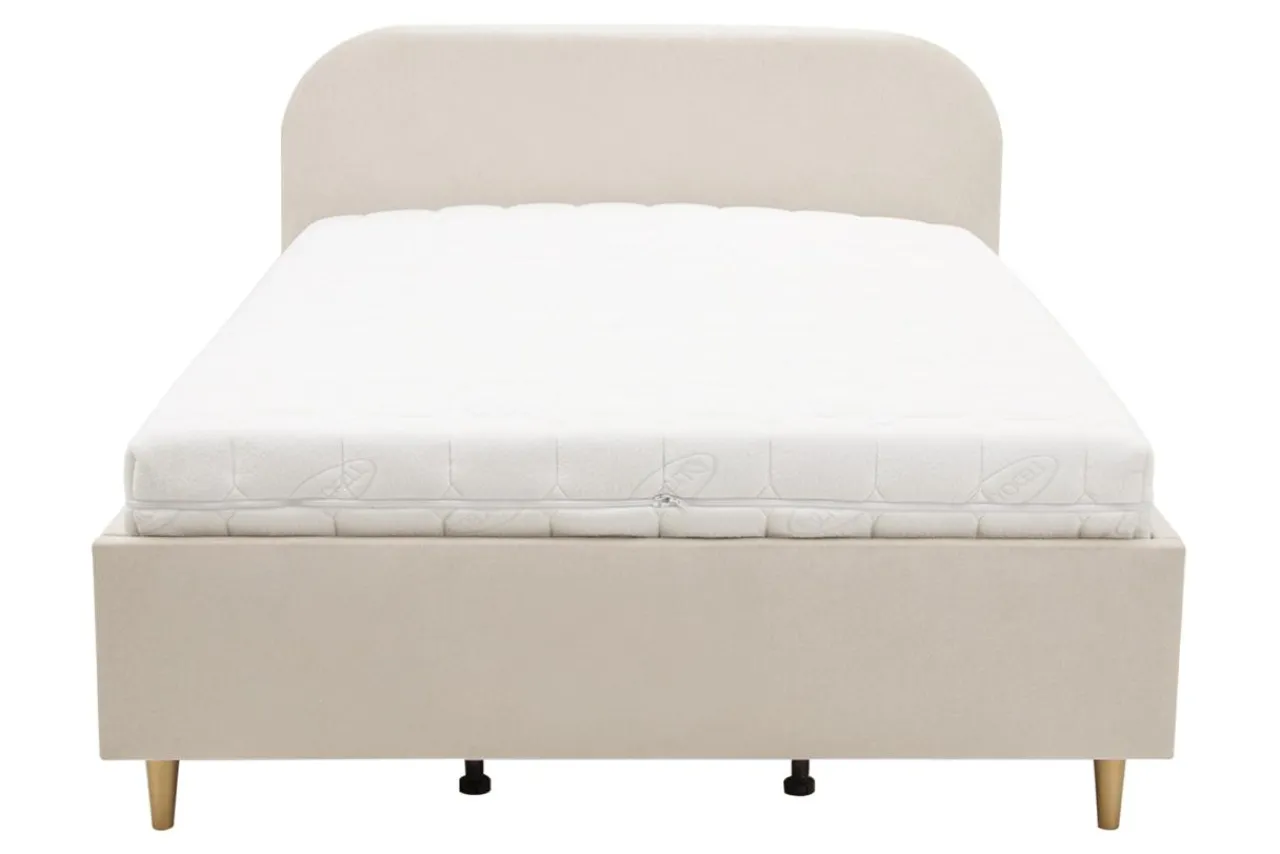 Duże wezgłowie i nogi w kolorze złotym prezentują się elegancko, a kremowe obicie doda przytulności Twojej sypialni.