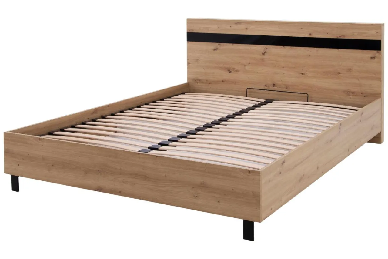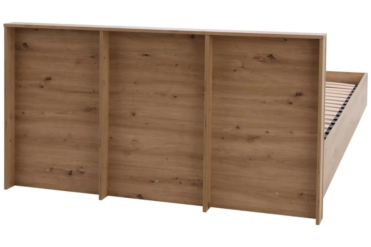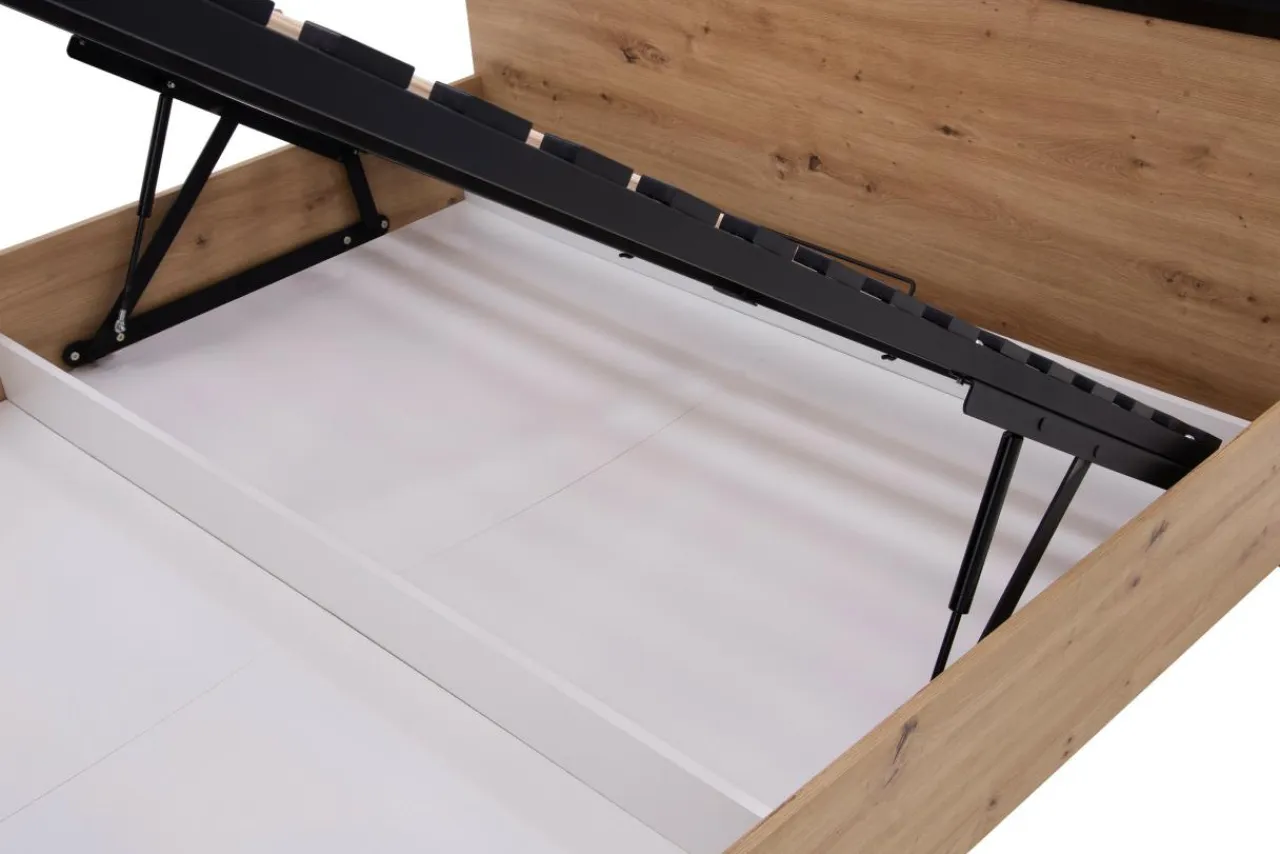- Ramę łóżka wykonano z płyty meblowej pokrytej laminatem w odcieniu dębu artisan.