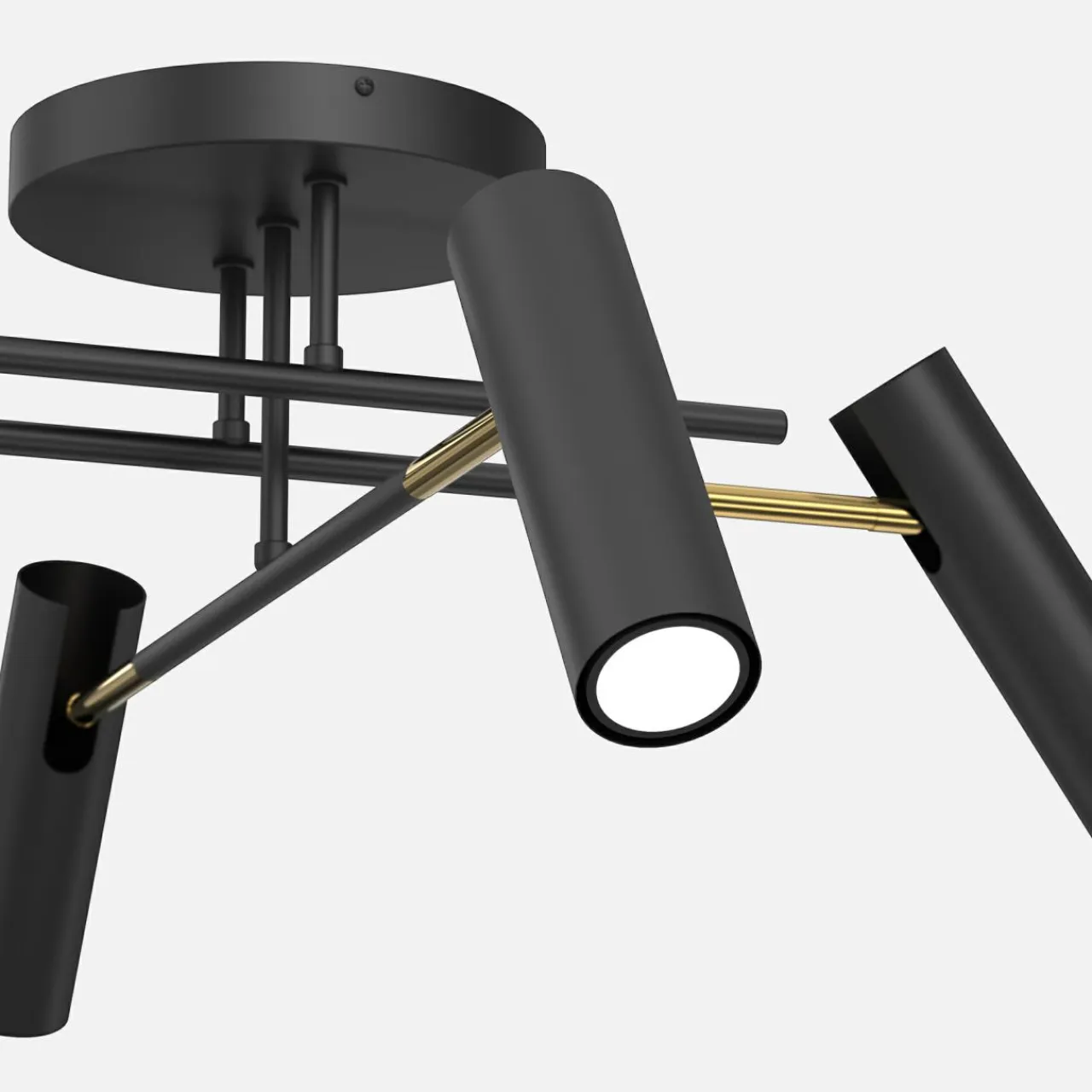 Sufitowa lampa do salonu AXION to oświetlenie, którego funkcjonalny design pozwala rozjaśnić przestronne wnętrze. Wyróżniającymi ją cechami są: lekka konstrukcja wykończona czarnym, matowym kolorem i złote zabarwienie ramion.