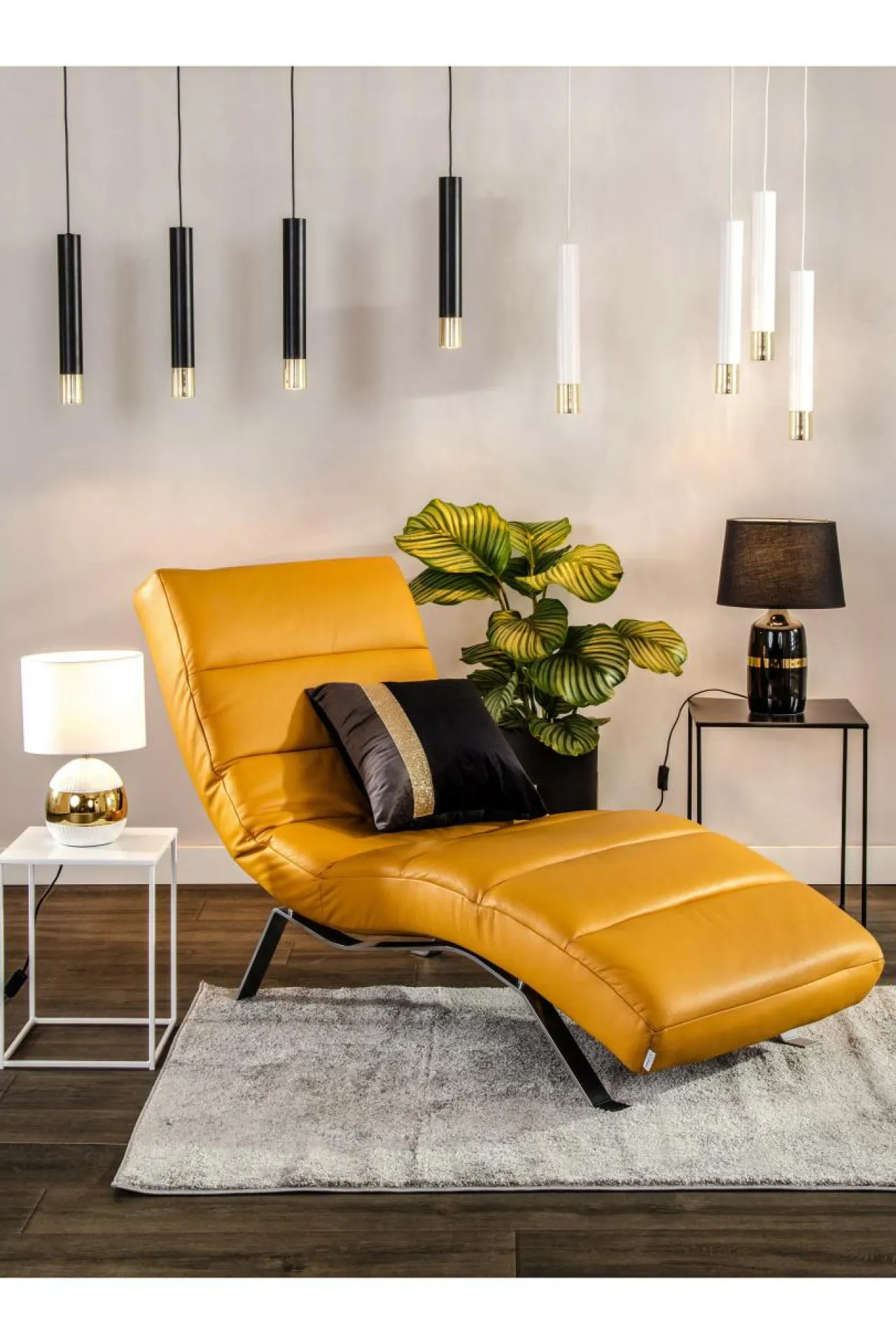 Obudowa NEST w kształcie skierowanego pionowo w dół walca została wykonana z metalu lakierowanego na czarny kolor oraz wzbogacona akcentami w złotym kolorze w dolnej części oprawy klosza. Umieszczona w środku żarówka typu GU10 rozświetla pomieszczenie światłem o mocy 8W.