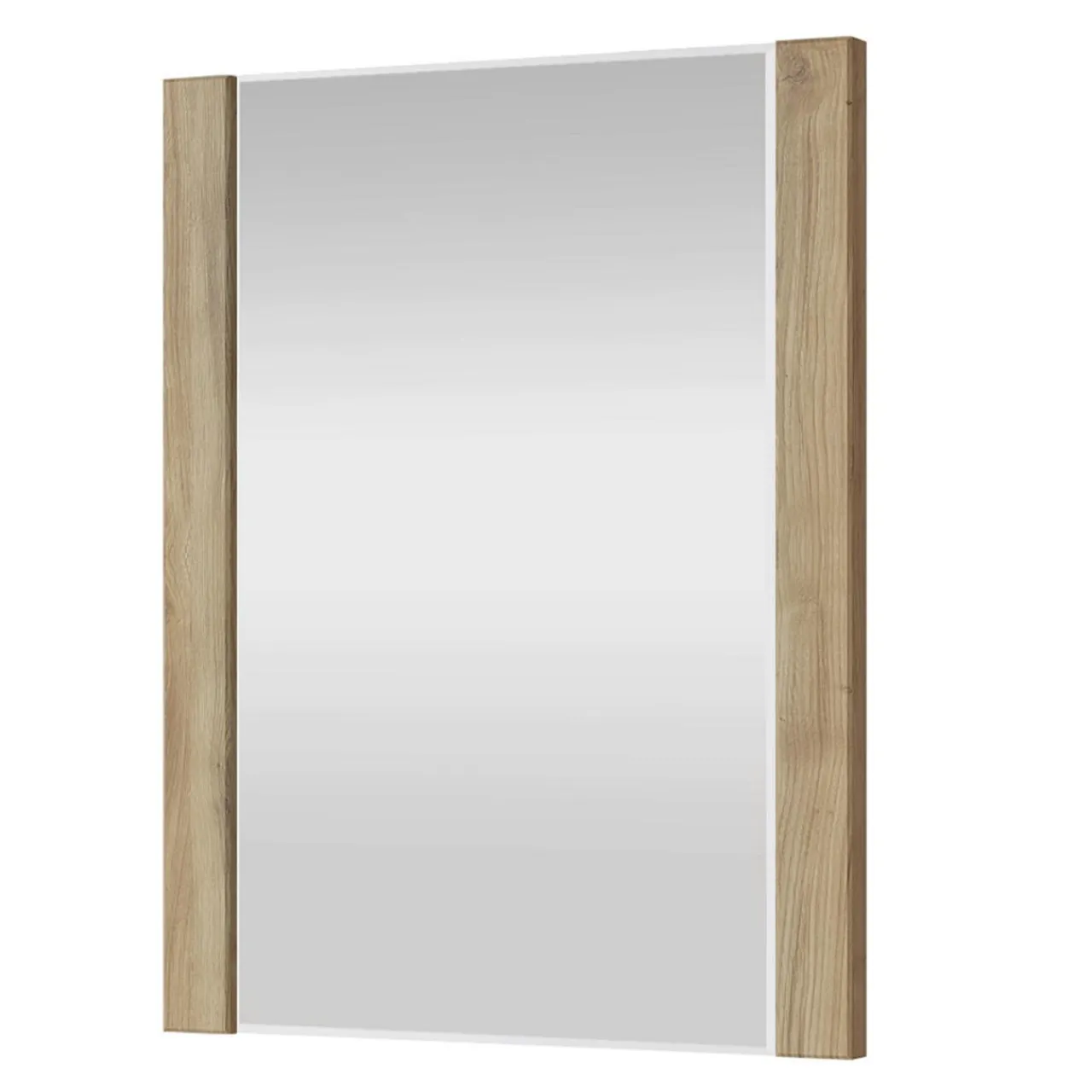 Rama wykonana jest z laminowanej płyty meblowej, która przypomina strukturą surowe drewno o naturalnym wybarwieniu.