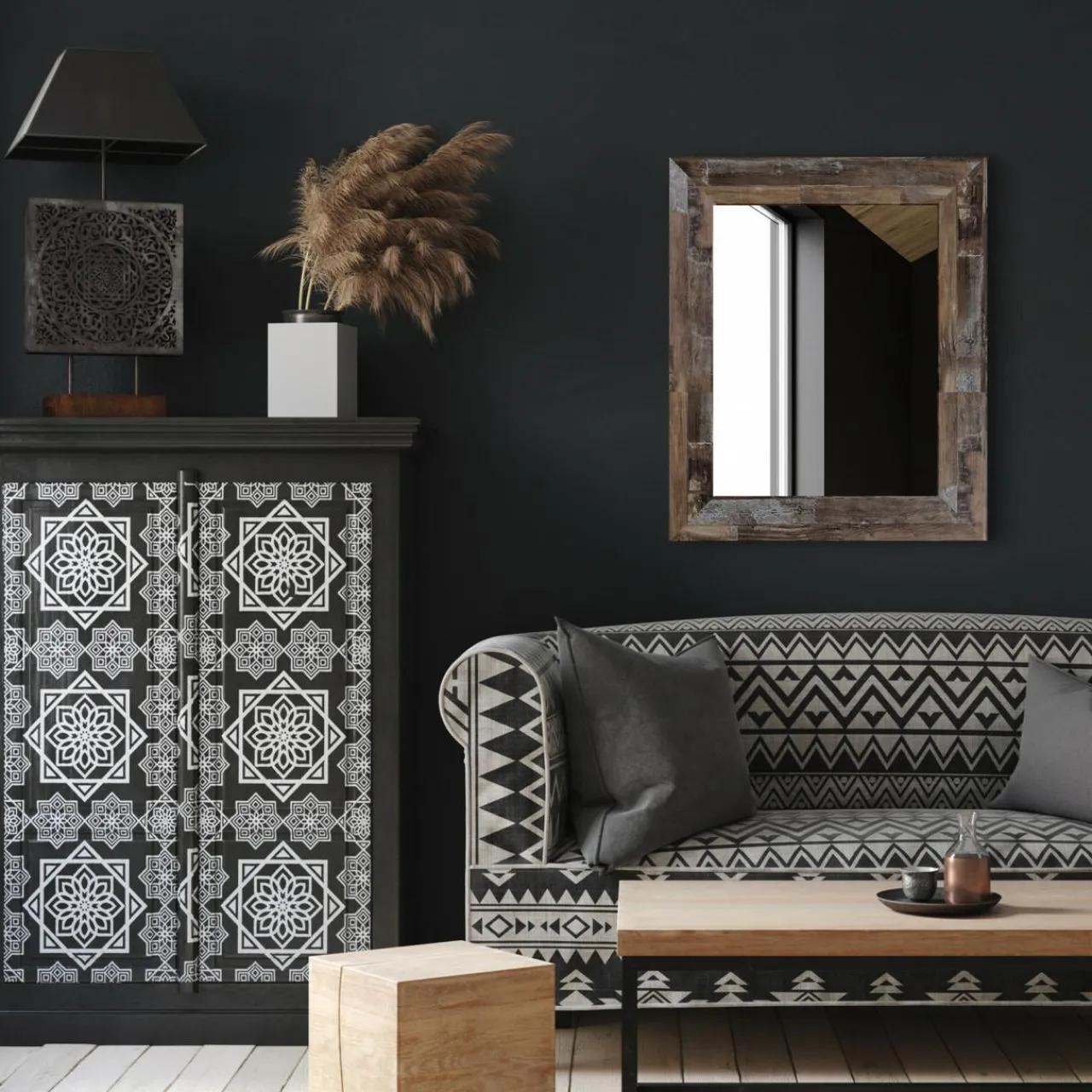 Stylowe lustro oprawione piękną, szeroką ramą z oryginalnym efektem przecieranego wzoru. Dzięki celowo postarzanej strukturze wygląda szlachetnie i ponadczasowo. Doskonale sprawdzi się w aranżacjach w stylu VINTAGE czy też RUSTYKALNYM, ale we wnętrzach nawiązujących do nowoczesnych i klasycznych trendów również znajdzie swoje miejsce. Jest znakomitą propozycją dla osób ceniących sobie innowacyjność połączoną z wysoką jakością wykonania. Lustro posiada możliwość zawieszenie (otwory do wieszania) zarówno w pionie jak i poziomie. Wymiary: tafla 44×70, całość lustra wraz z ramą: 60×86, grubość: 2,8cm.