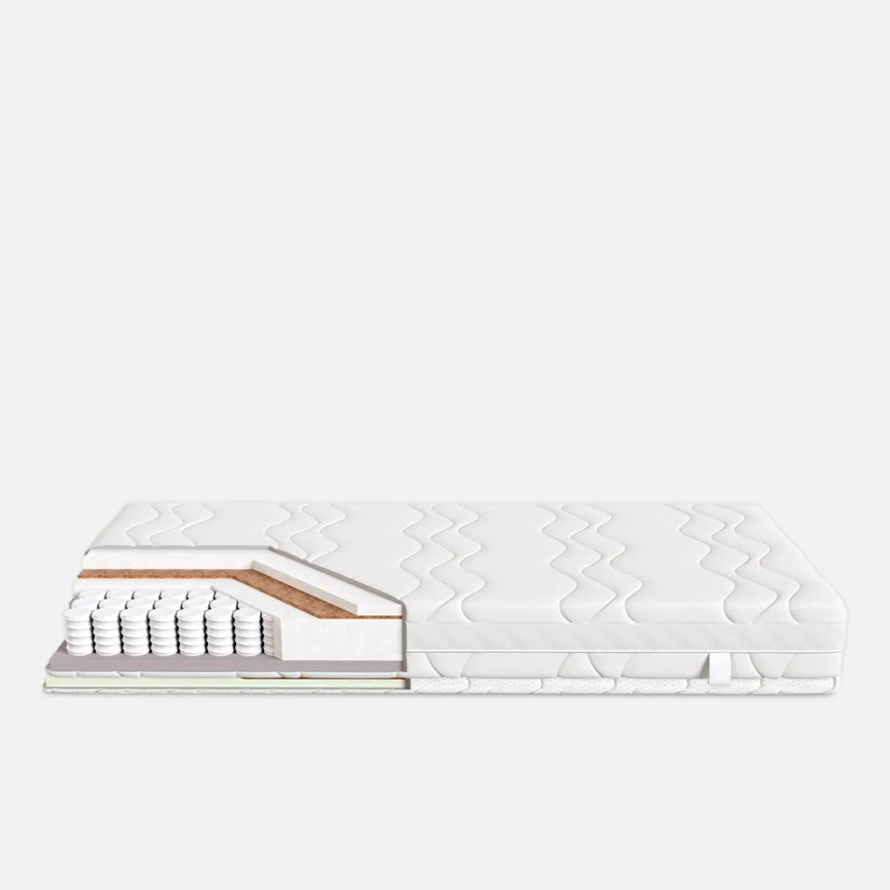 Materac NIMBO to idealne rozwiązanie dla osób, które preferują twarde powierzchnie spania. Wkład kokosowy i 7-strefowe sprężyny kieszeniowe zadbają o prawidłowe ułożenie kręgosłupa i ciała podczas snu.