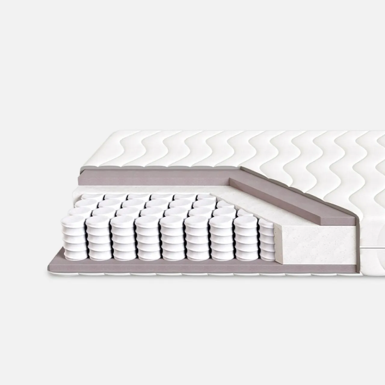 - W środku materaca mieszczą się sprężyny kieszeniowe. Każda z nich umieszczona jest w osobnej kieszonce, dzięki czemu pracują osobno, a materac posiada podwyższony komfort użytkowania. Dopasowuje się do postury ciała, dba o prawidłowe ułożenie kręgosłupa. Sprężyny kieszeniowe będą dobrym wyborem dla par z różnicą wagi.
