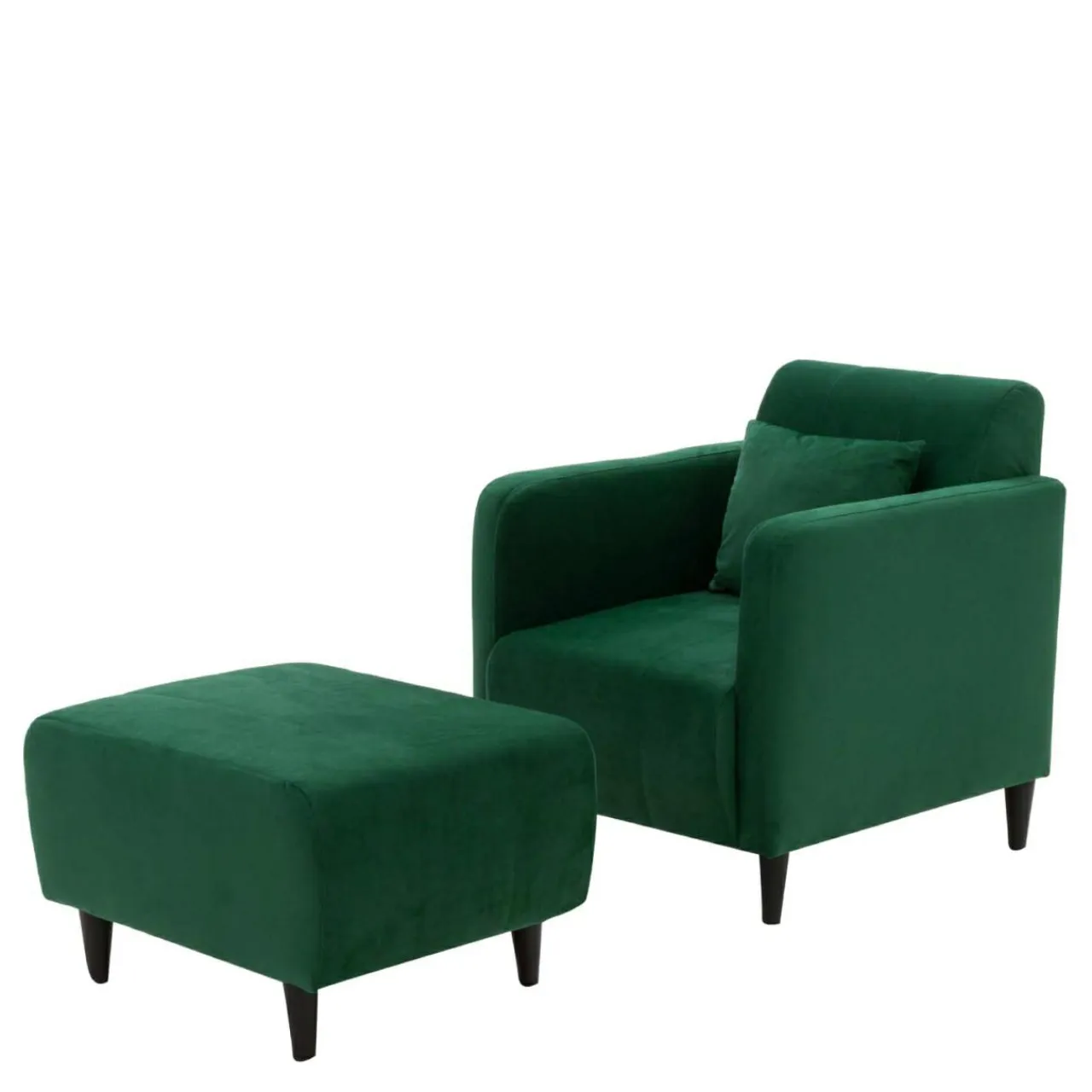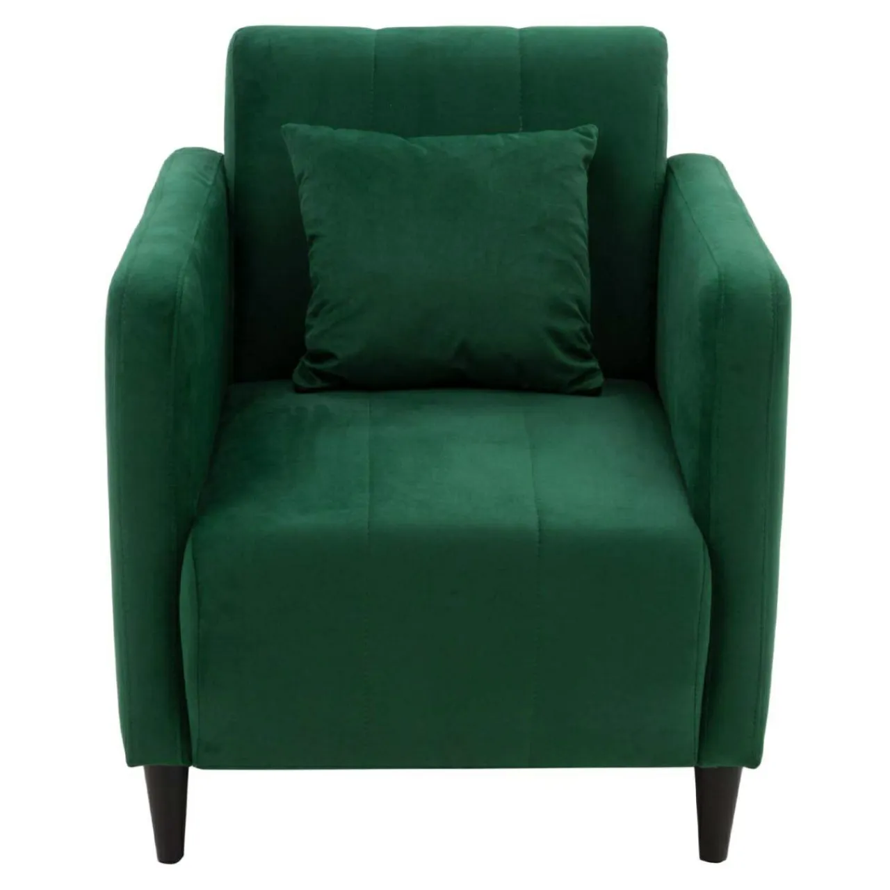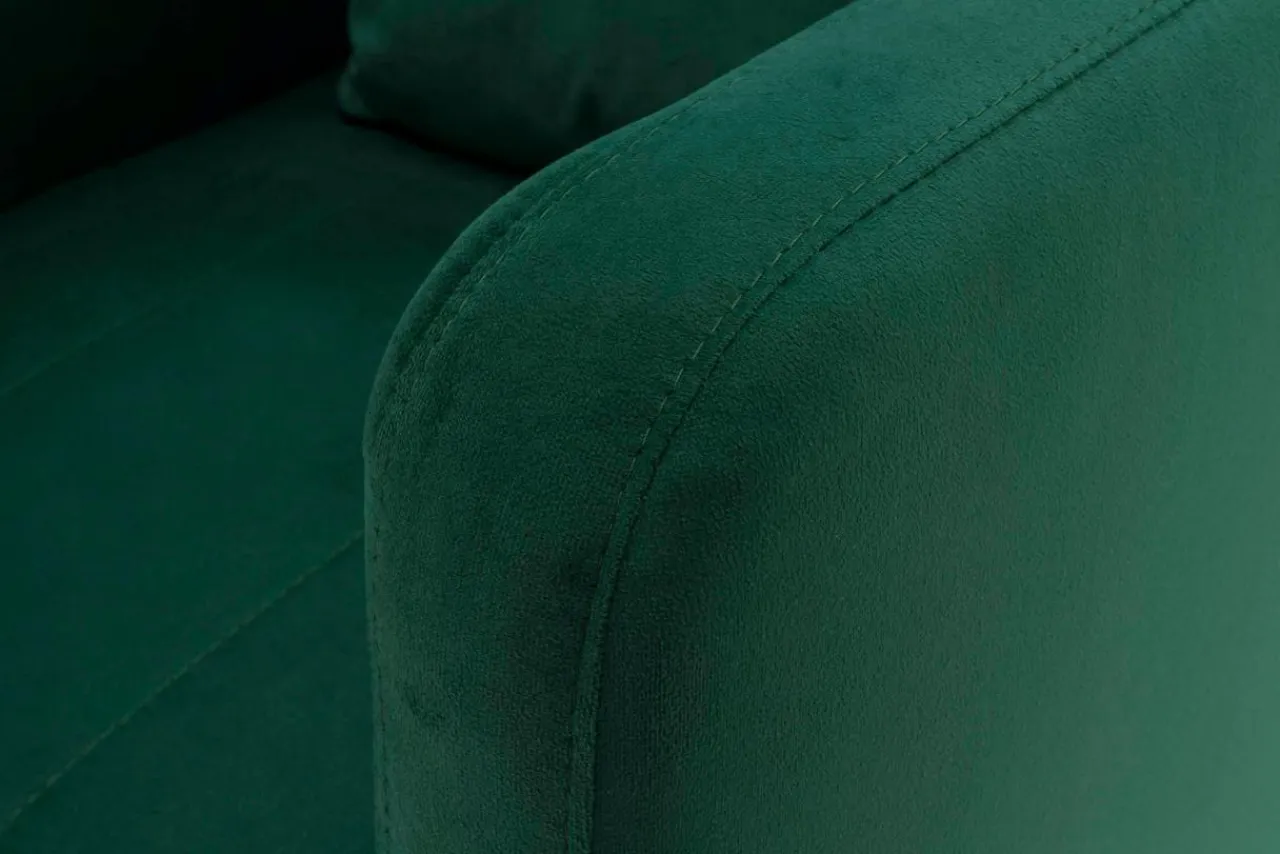 Fotel wykończono przyjemną w dotyku tkaniną w zielonym kolorze. Welur wprowadza do wnętrza przytulną atmosferę.