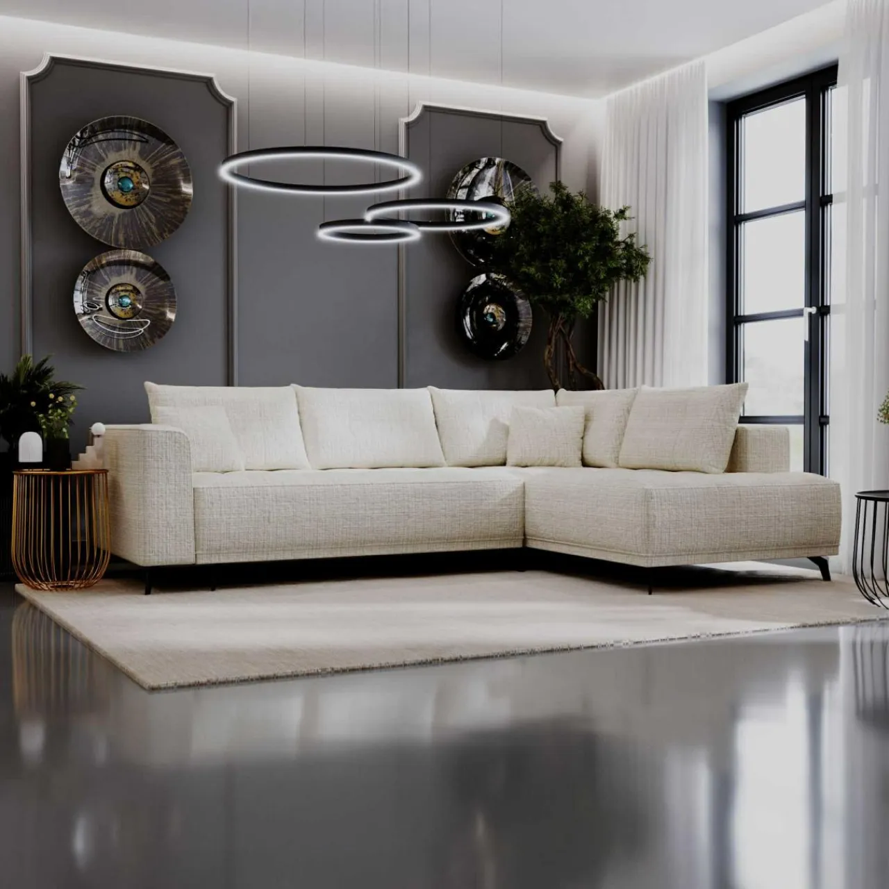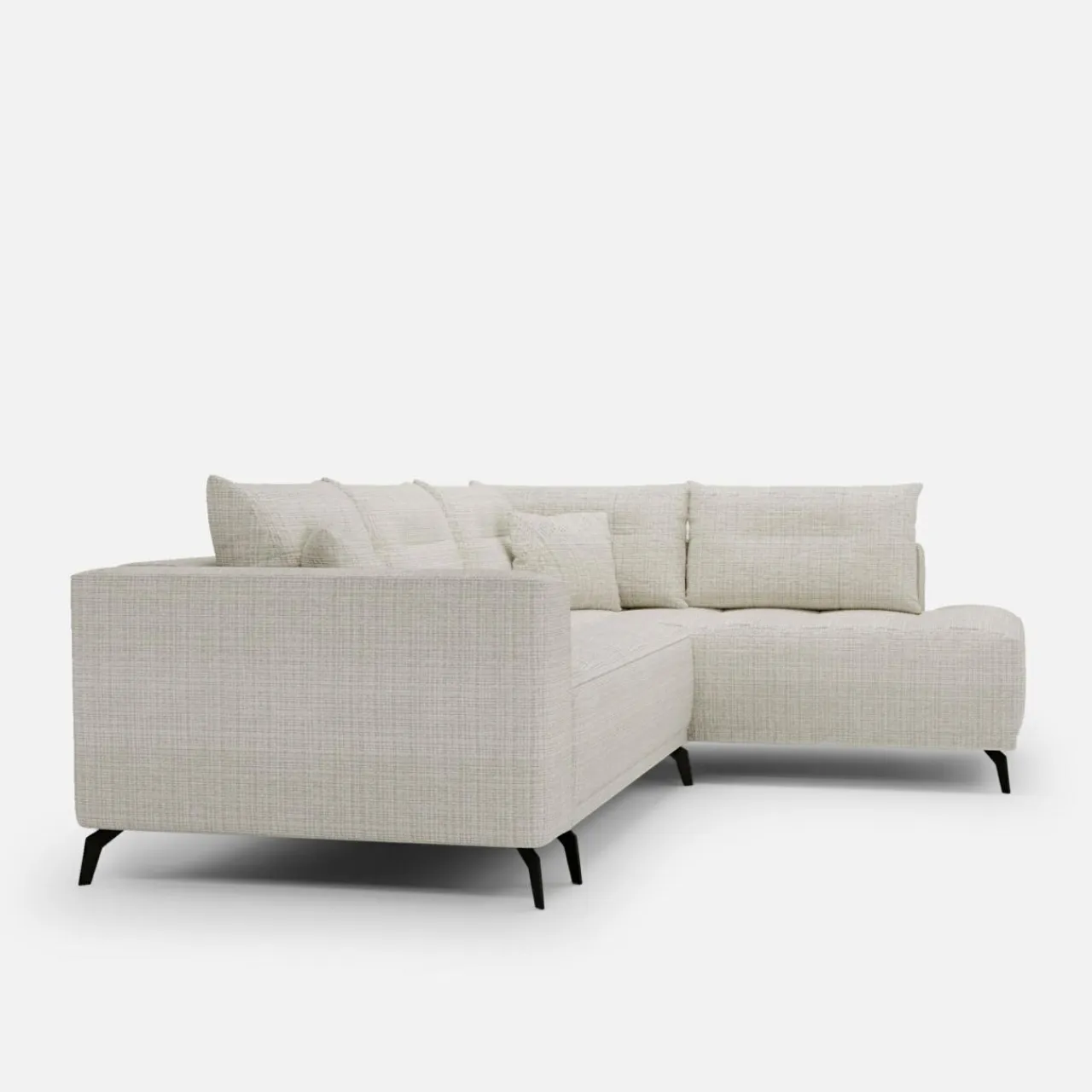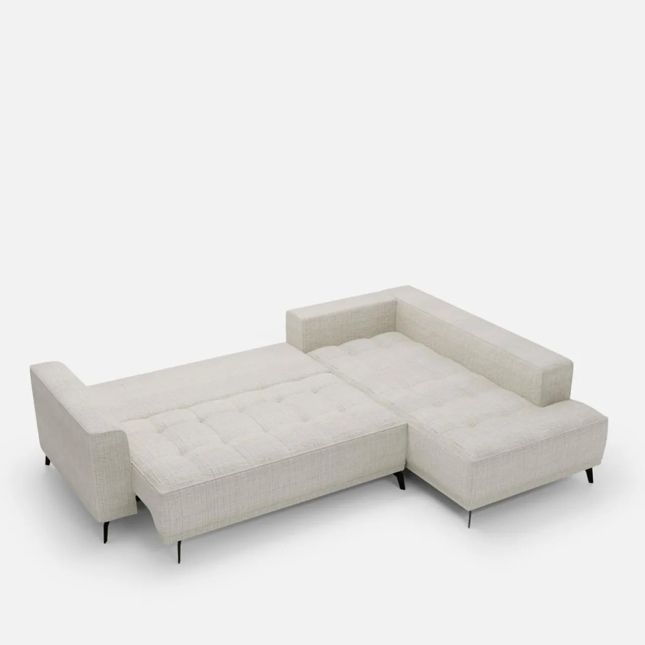 Miękkie poduszki zapewniają wygodę, a pojemnik pod siedziskiem pozwala schować pościel. Mechanizm DL ułatwia szybkie rozłożenie narożnika na dodatkowe miejsce do spania.