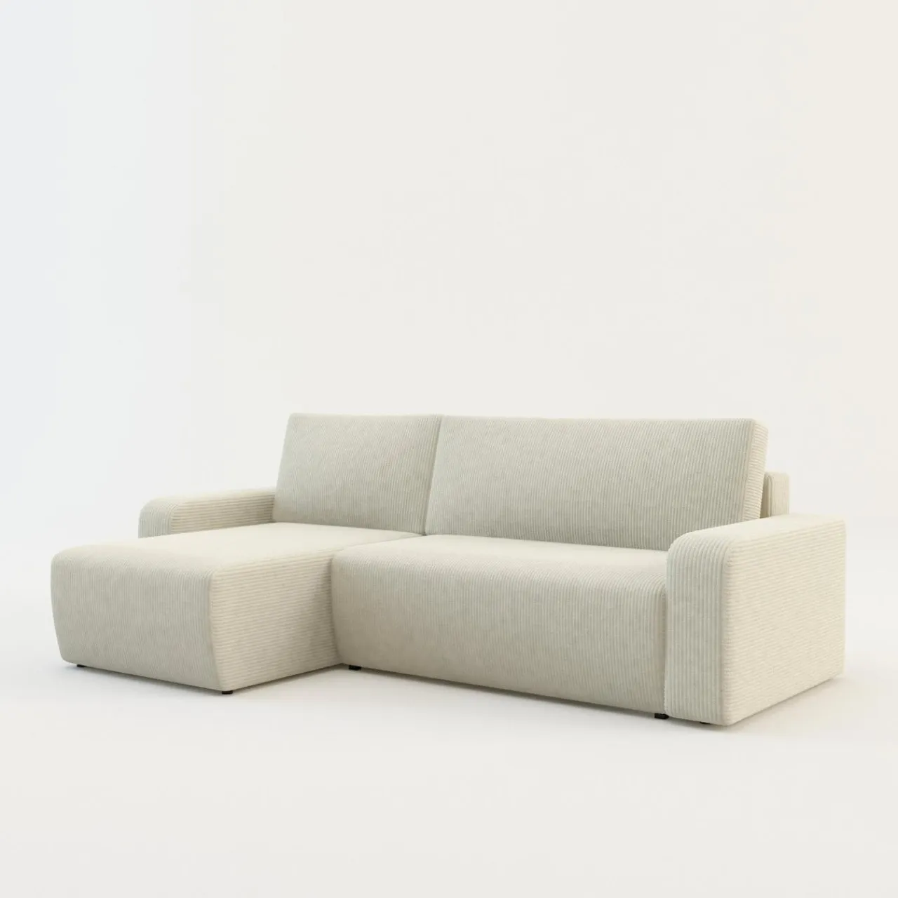 - Narożnik obity jest tkaniną LINCOLN w ciepłym kolorze kremowym.