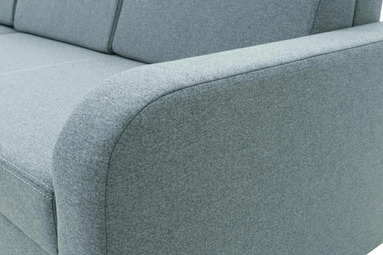 - Narożnik został wykończony tkaniną RINO – materiałem o drobnym splocie, w którym nici przeplatają się między sobą, tworząc niejednolitą, unikalną kompozycję.