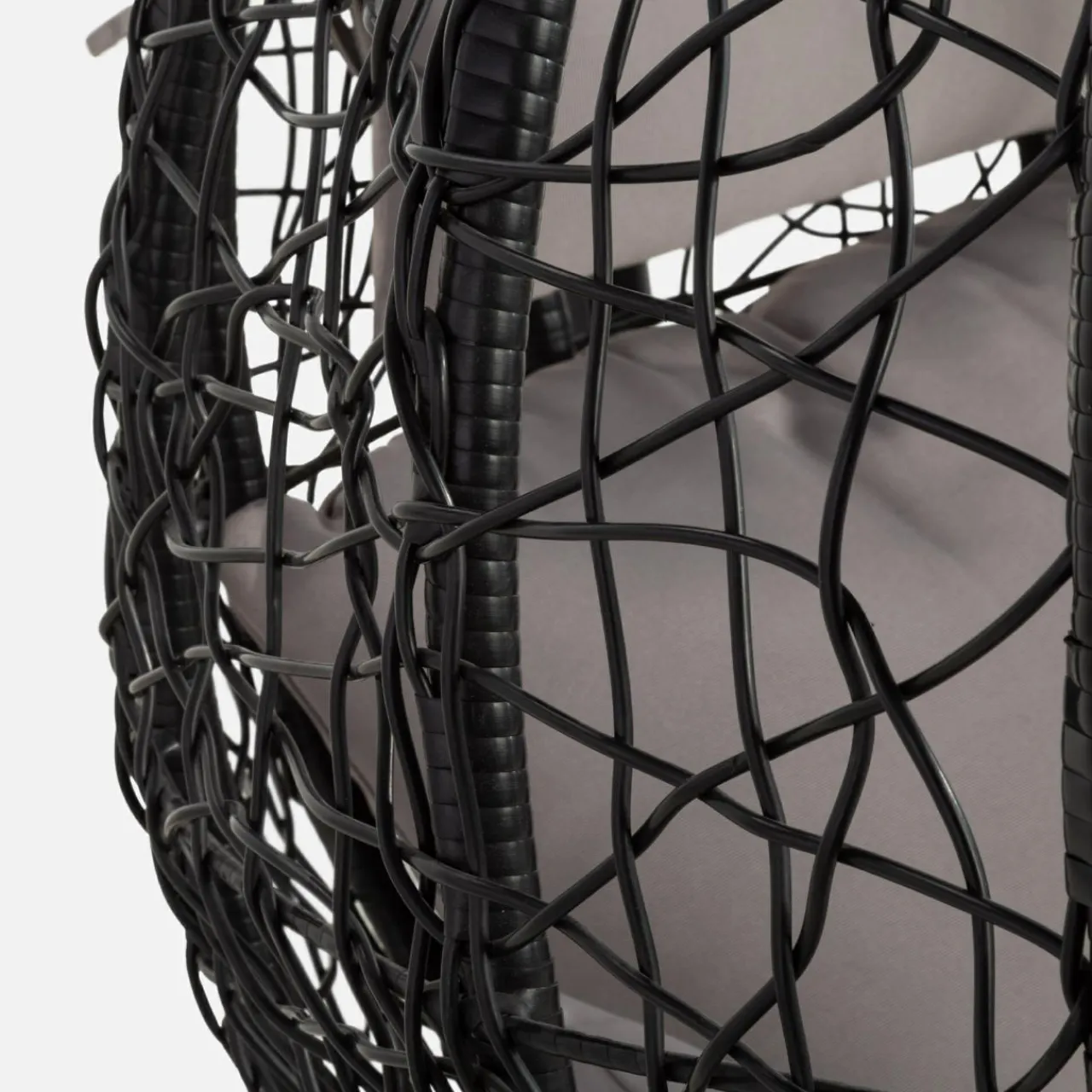 Owalny kształt siedziska – przypominający kultowe fotele „jajo” – zapewnia poczucie intymności i przyjemnego otulenia.
