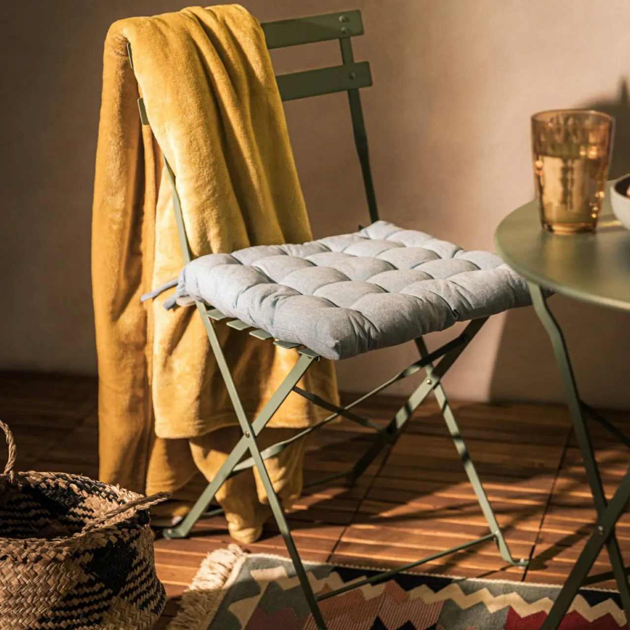 - Krzesło wykonano z metalu, więc stabilnie stoi na podłożu i nadaje się do użytkowania na zewnątrz.