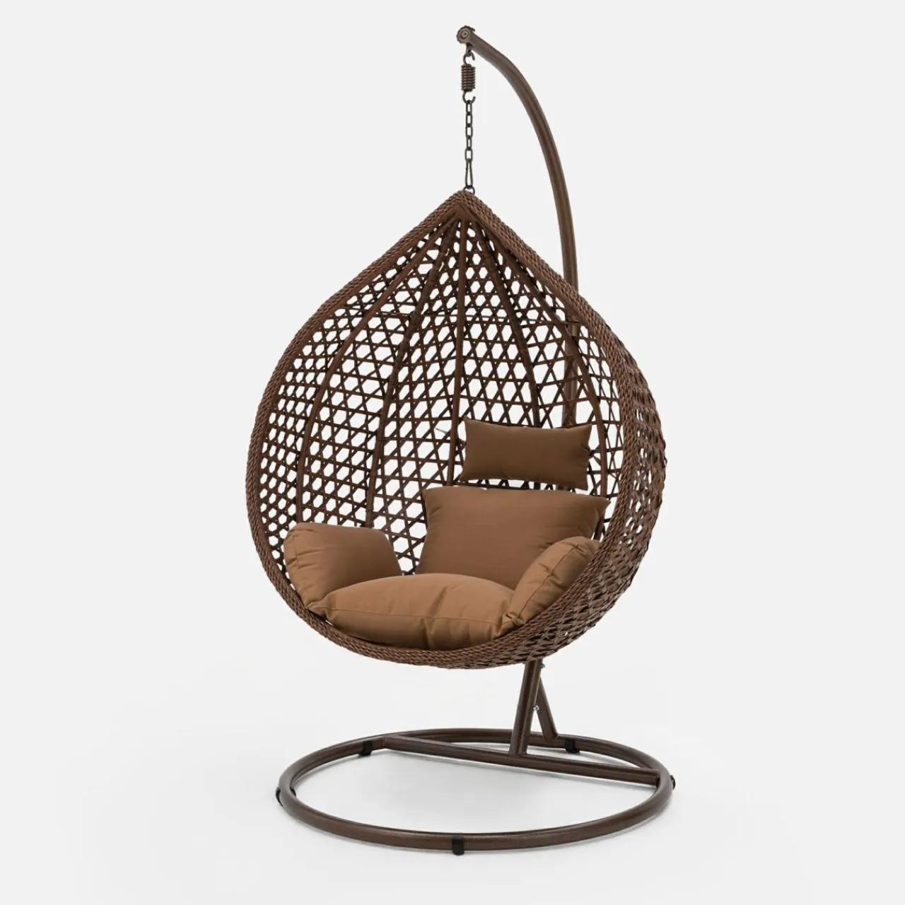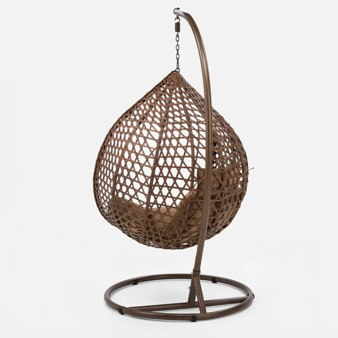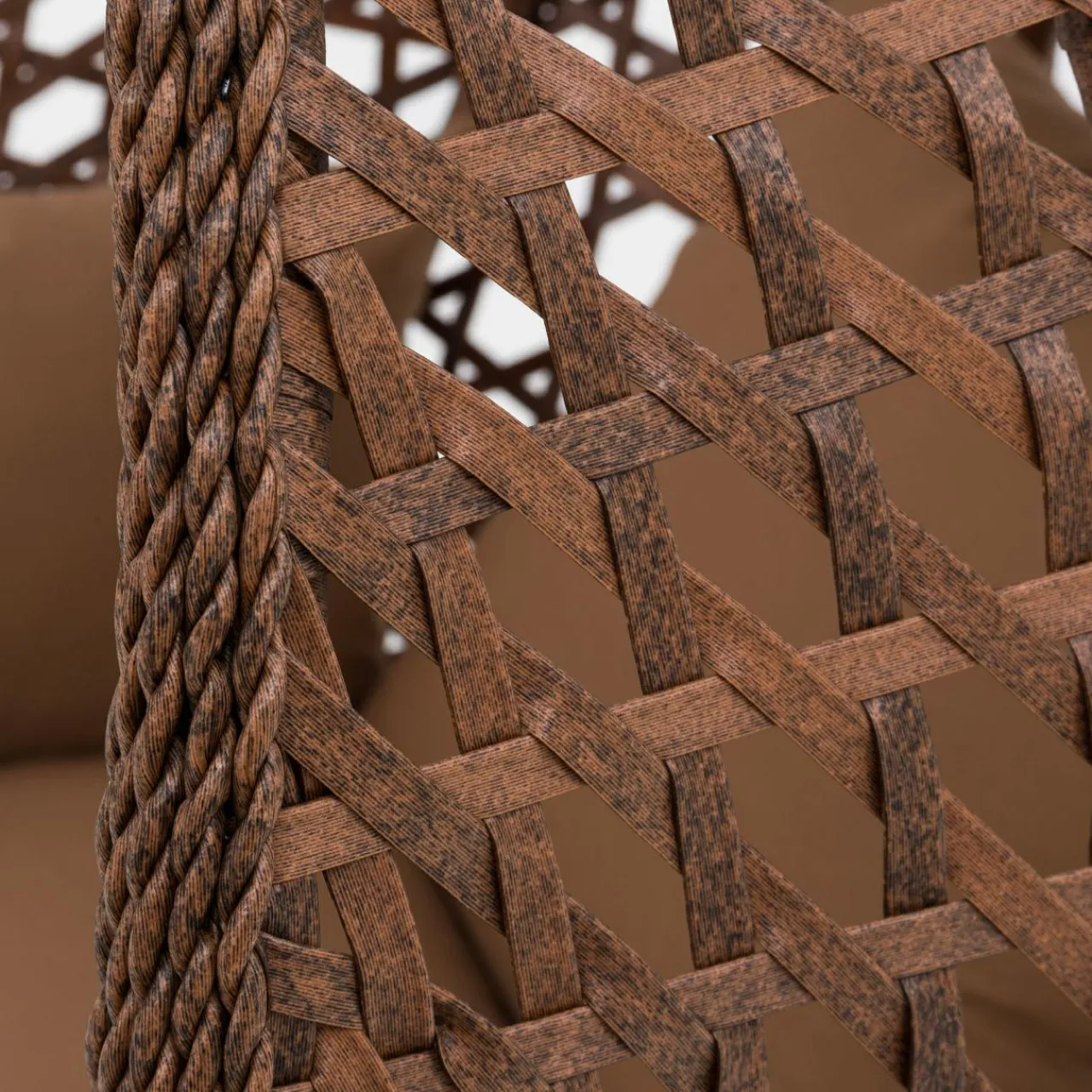 - Brązowy kolor stelaża, siedziska i tapicerowanych poduch koresponduje z naturalnymi barwami ogrodu.