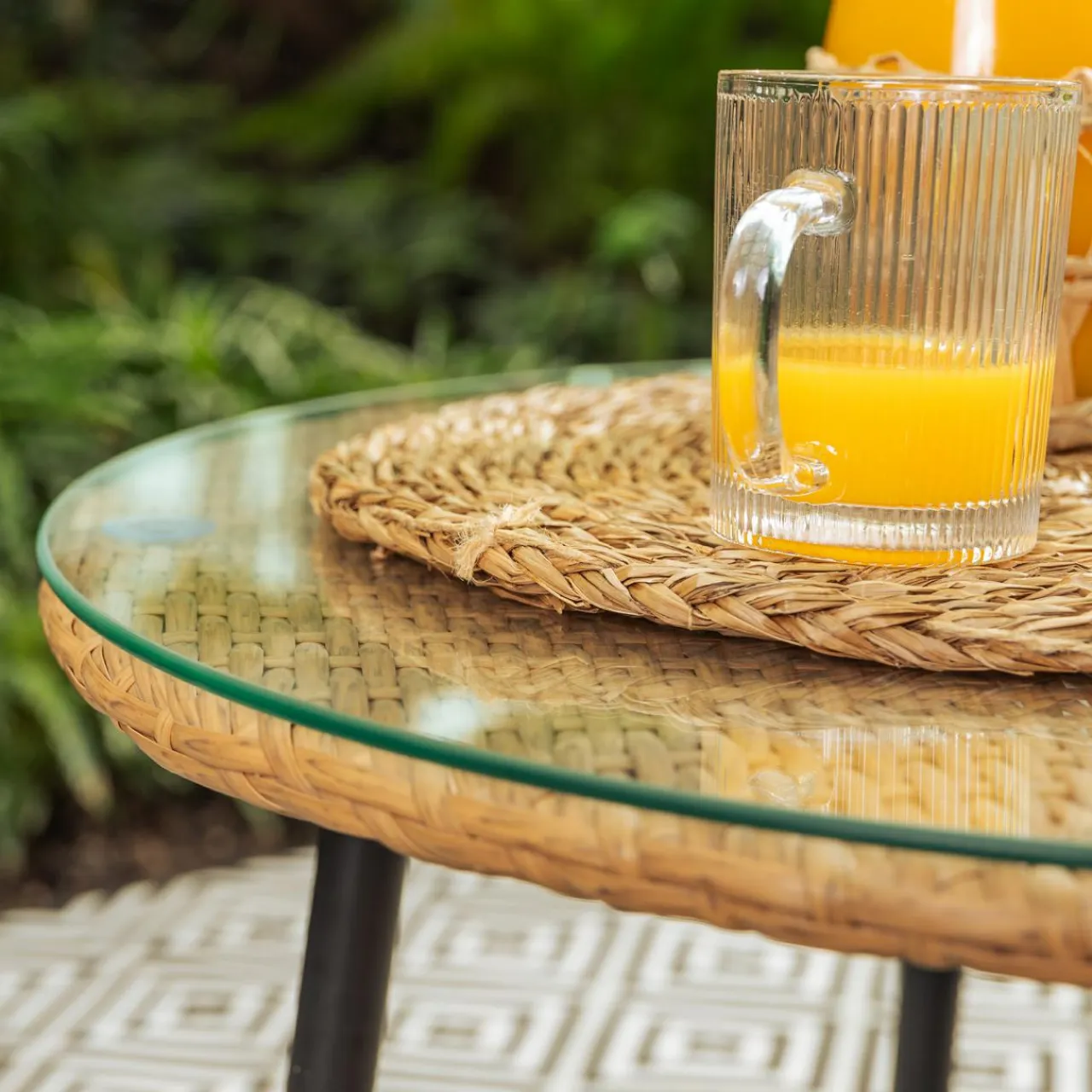- Stolik posiada szklany blat, który zwiększa stabilność postawionych szklanek z napojami i drobnych przekąsek.